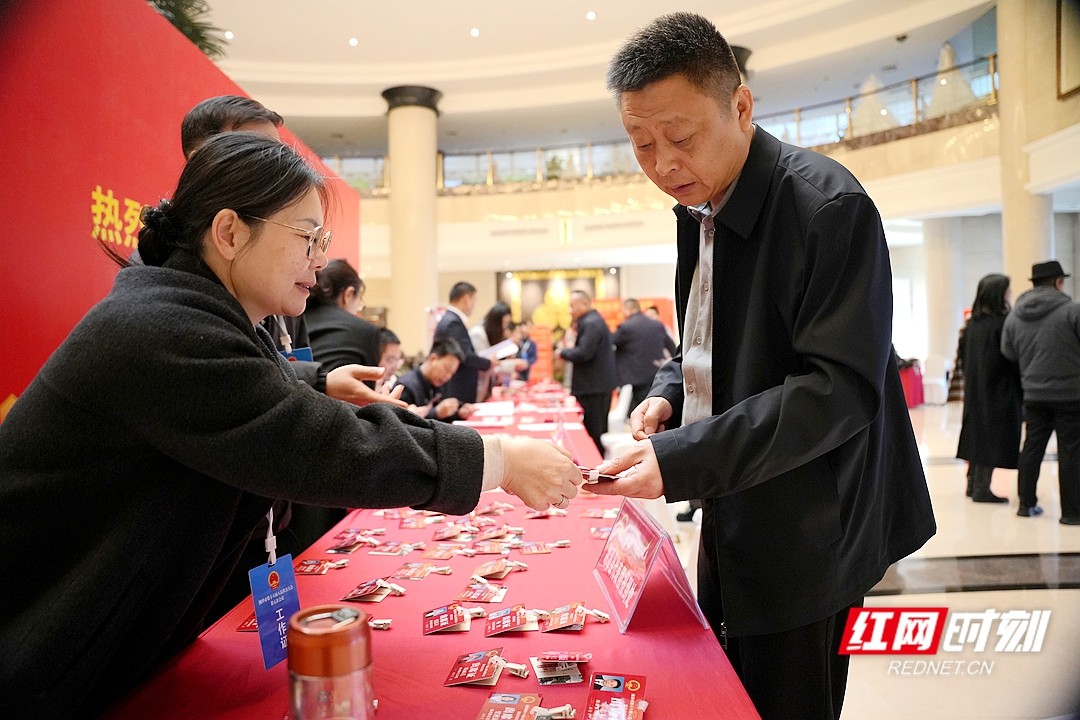 报到现场。 红网时刻新闻12月22日湘潭讯(记者 凌雨晴 楚湟 见习记者 李乐怡)12月22日上午,出席湘潭市第十六届人民代表大会第五次会议的代表们承载着全市人民的期望与嘱托,以饱满的政治热情、昂扬的精神状态向大会报到。 报到现场,人大代表们个个精神饱满,依次有序签到、领取会议资料。工作人员热情地迎接代表们的到来,认真介绍报到程序,做好接待、引导等服务工作。为充分履行好代表职责,反映好群众心声,代表们在会前深入基层调研,广泛听取意见。产业、交通、旅游、城建、治安、农业、教育等重点热点问题,是今年代表们关注的焦点。