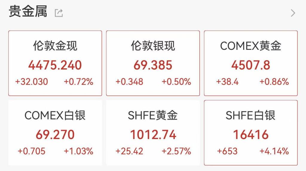 12月23日,现货黄金(伦敦金现)延续上涨势头,盘中一度逼近4500美元/盎司关口,达4497.754美元/盎司,续创历史新高。截至发稿,报4475.24美元/盎司,涨0.72%。 ![]() 与此同时,COMEX黄金在相继突破4500美元/盎司、4510美元/盎司、4520美元/盎司关口后有所回落,截至发稿报4507.8美元/盎司,涨0.5%。 12月22日,现货黄金站上4400美元/盎司。周一美股交易时段,国际黄金、白银价格加速上涨,COMEX黄金期货大涨2.13%,报4480.6美元/盎司;COMEX白银期货大涨2.37%,报69.09美元/盎司,势将创下1979年以来的最大年度涨幅。 受此影响,国内品牌金饰价格纷纷上涨,多家品牌金饰克价站上1400元。周大福、周生生足金饰品价格上调至1403元/克,老庙黄金足金饰品价格也上调至1402元/克。 ![]() 其他贵金属品种也全线飙升,12月23日,现货白银首次站上70美元关口。 在中国市场,12月23日,广州期货交易所的铂金和钯金主力合约双双触及10%的涨停板,创下上市以来新高。截至发稿时,二者涨幅稍有回落。 为应对过热的交易,广州期货交易所已于12月18日宣布,将非期货公司会员或客户的铂金和钯金合约持仓限额设定为500手。 上海期货交易所也出手降温。12月22日晚间,上期所发布公告,针对白银期货相关合约出台多项风险防范措施,内容涵盖调整交易限额、调整平今仓交易手续费等。分析人士认为,此举旨在为市场降温,引导理性交易,投资者在交易时应注意控制风险。 12月23日早间, 上海黄金交易所发布《关于继续加强近期市场风险控制工作的通知》,提醒会员单位,近期影响市场不稳定的因素较多,贵金属价格波动剧烈。请各会员提高风险防范意识,继续做好风险应急预案,维护市场平稳运行。同时,提示投资者做好风险防范工作,合理控制仓位,理性投资。 分析人士指出,美国11月CPI及核心CPI增速降至多年低位,强化市场对美联储宽松政策的预期,叠加地缘风险与央行购金支撑,贵金属价格持续走强。 据新华社援引彭博社22日的预期,黄金和白银都将迎来自1979年以来最强劲年度涨幅。受各国央行增持以及资金流入“交易所交易基金”(ETF)推动,金价今年已飙升约三分之二。数据显示,黄金支持的ETF已连续5周资金流入增加。世界黄金协会的数据表明,除5月外,今年这些基金的总持仓量逐月增加。 除央行外,投资者同样在金价上涨中发挥重要作用。受“贬值交易”推动,即出于对主权债券及其计价货币价值的担忧,投资者纷纷撤离这些资产。美国《华尔街日报》10月报道,担忧美元等货币前景的投资者正大举买入黄金等替代性资产。 高盛本月18日发布的研报预期,到2026年年底,金价将涨至每盎司4900美元。该行补充说,这一预测存在低估风险,并提到私人投资者可能出现更广泛的多元化资产配置需求。 在另一份概述2026年大宗商品前景的研报中,高盛预计央行购金的高需求以及美联储降息带来的周期性支撑,将继续为金价上涨奠定基础,建议做多黄金。 但狂欢也伴随着风险,摩根大通警告高昂的银价正侵蚀光伏需求。同时,需高度警惕1月8日起彭博商品指数再平衡引发的技术性抛压:预计白银抛售规模占期货持仓9%,黄金占3%,这股巨量强制卖盘或打破新年季节性利好。 (文章来源:澎湃新闻) |