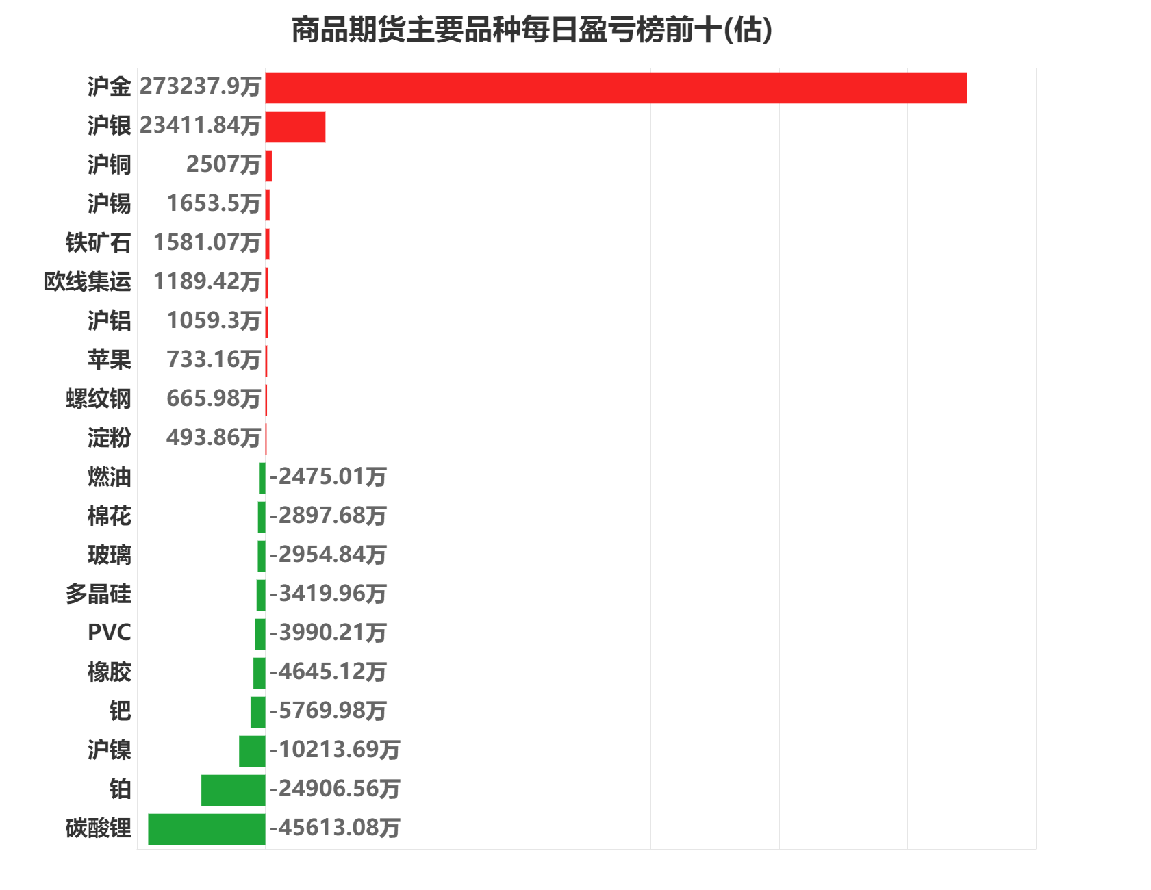 ![]() ![]() ![]() 品种盈亏榜:今日商品期货上榜机构席位中沪金盈利第一,为273237.90万元。 碳酸锂亏损第一,为45613.08万元。 ![]() 注:盈亏数据为对应龙虎榜持仓的估算数据。 您可通过点击东方财富期货APP资讯页面“龙虎榜”及东方财富期货PC端左侧“龙虎榜”查看各类席位持仓及盈亏榜单信息。点此查看>> ![]() ![]() 本信息来源于东方财富Choice数据,相关数据仅供参考,若数据有误,以交易所发布数据为准,不构成投资建议。 (文章来源:东方财富研究中心) |