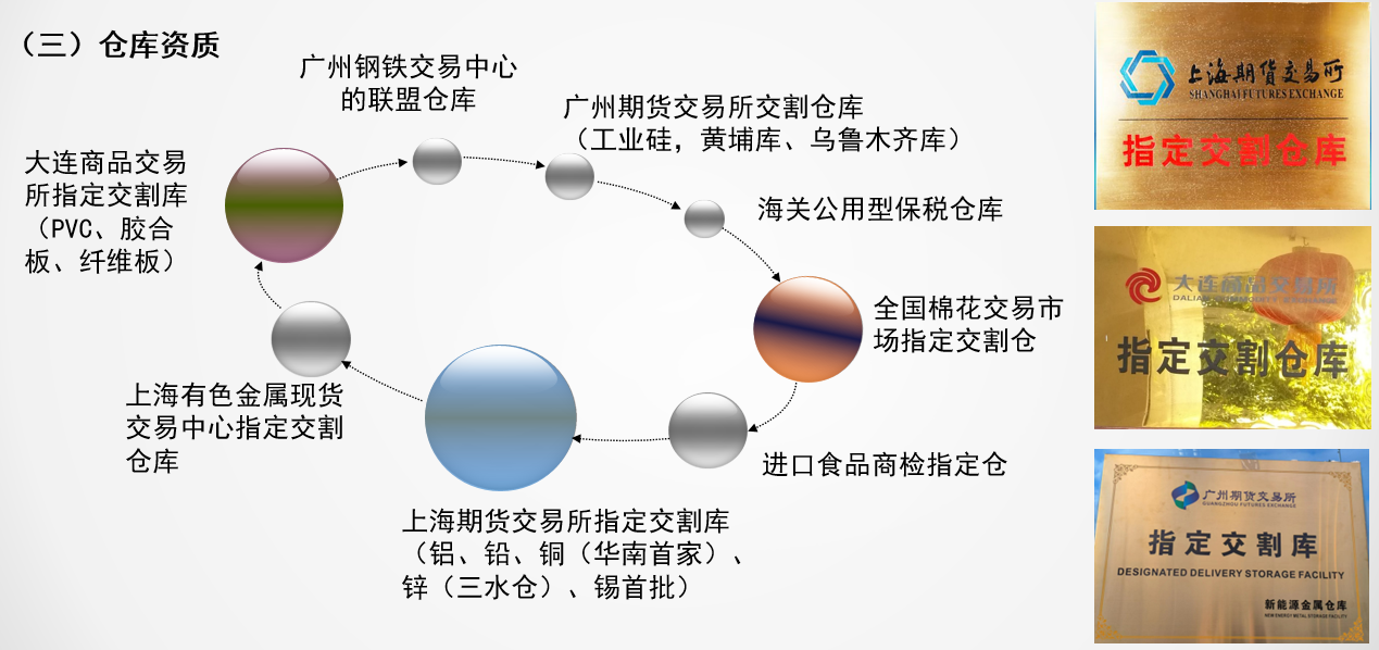 设备设施 国储公司各分子公司仓库大部分配有铁路专用线、标准仓库或大型混凝土货场,配备龙门吊、叉车等各类装卸机械和专业装卸作业队伍。 仓库资质