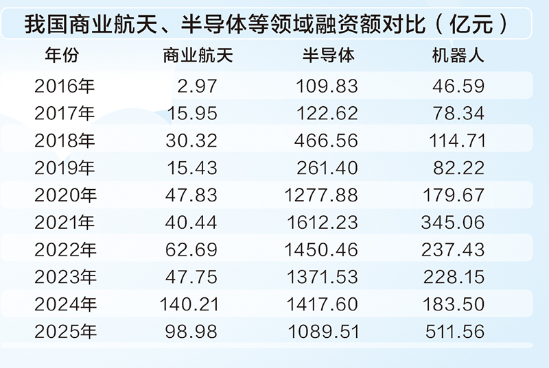 证券报记者 张娟娟 作为逐梦星河的战略产业,商业航天市场规模极其庞大。数据显示,2025年全球商业航天市场规模将突破7000亿美元,我国商业航天市场规模从2015年的约0.38万亿元增长至2024年的2.3万亿元,年均复合增长率约22%。 我国为何要大力推进商业航天?核心原因有二: 其一,资源与技术紧迫性。根据国际电信联盟(ITU)数据,截至2023年,全球仍有三成人口未接入互联网,卫星互联网发展潜力十足。此外,近地轨道卫星承载量及低轨主流Ku/Ka频段资源日趋饱和,且ITU遵循“先申报、先使用”原则,要求申报资源7年内完成部署,窗口期约束极强。美国SpaceX公司的Starlink星座已规划近4.2万颗卫星,抢占大量优质资源。 其二,产业前景广阔。中国电子信息产业发展研究院预计,2025年我国商业航天市场规模将增至2.8万亿元。东吴证券亦预测,到2030年市场规模将进一步攀升至7.8万亿元。 在迎来机遇的同时,我国商业航天同样也面临着一些挑战,主要包括技术、运力、资金三方面。 回收技术难度大 早在上世纪60年代,钱学森在《星际航行概论》中就超前提出“回收运载火箭”的设想。他认为,对于未来频繁的发射来说,一次性的运载火箭就是浪费,应该想办法把空的运载火箭收回来。 华西证券指出,一级火箭是成本占比最高的部分,占比达60%至70%,其中发动机成本占该级总成本的50%以上,箭体结构约占火箭总成本的20%至30%,发射服务成本约占卫星总成本的30%至40%。因此在商业航天领域,控制一级火箭成本成为降本核心。 航天专家庞之浩曾表示,火箭回收并重复使用的技术如果被掌握,可节省发射成本80%左右。发射火箭姿态、火发动机推力可调性、箭体材料等均是制约火箭回收的难点。 当前,“国家队”与商业火箭公司均已加码可回收复用火箭的研制,除朱雀三号、长征十二号甲已开展飞行验证外,长征十号甲、双曲线三号、引力二号、力箭二号等,均计划于2025年底至2026年随发射任务开始回收试验验证。 火箭运力待提升 目前,国内已启动三大卫星星座组网计划,包括国网公司的“国网星座”(GW),规划总规模达12992颗卫星;上海垣信的“千帆星座”(G60星链),到2030年打造由1.5万颗卫星组成的卫星网络;蓝箭航天旗下鸿擎科技的“鸿鹄星座”,计划将在160个轨道平面上总共发射约1万颗卫星。 根据国际电信联盟预测的发射节奏,预计“国网星座”2026~2029年发射约1200颗卫星,2030~2032年发射5200颗,2033~2034年发射6496颗;预计“千帆星座”2026~2032年发射1392颗,2033~2035年发射6000颗,2036~2037年发射7500颗。这意味着,自2030年起,每年卫星发射数量较此前将有数倍增长。 上述两大卫星星座的部署完成率不足5%,火箭运力不足已成为制约卫星发射进度的核心瓶颈。在此背景下,加快实现火箭可回收复用,成为破解运力困局的关键路径。 对标美国,我国在发射能力上仍存在显著差距。2024年,美国全年完成158次航天发射任务,是我国同期的2.3倍,仅SpaceX公司就完成138次。今年以来,SpaceX发射进度提速,已完成165次发射任务,累计部署卫星超9000颗。相比之下,我国的航天发射频次与规模仍有较大提升空间。 融资力度不足 商业航天普遍存在“投资高、风险大、回报慢”的特点,但其最终目标仍聚焦于盈利。面对行业特性与广阔的市场前景,业内共识已十分明确:商业航天要实现盈利目标,离不开长期的战略定力,更需要耐心资本的持续“陪跑”。 在此背景下,商业航天吸引了创投机构、上市公司、政府引导基金等多方资本入局。根据IT桔子数据,2016年至2025年(截至12月19日),商业航天领域融资总额超过500亿元。 然而,对比近十年我国半导体领域超9000亿元的融资额,机器人领域超2000亿元的融资额,商业航天的融资额远低于上述两者。已启动IPO的SpaceX公司,拟募资额或远超300亿美元,我国商业航天的融资力度明显不足。 从A股融资来看,已上市公司方面,按上市日统计,近十年(2016年初至今年12月23日),万得商业航天板块公司合计首发募资超过295亿元,合计定增募资接近529亿元,两者合计接近825亿元。其中,2021年至2025年,商业航天板块首发募资总额较2016年至2020年增幅约两成,同期全部A股首发募资总额增幅接近35%。 IPO公司方面,目前,仅电科蓝天已过会并提交注册,公司拟募资15亿元。IPO辅导备案方面(含IPO各状态公司及已上市公司),以“航空运输业”、“航空、航天器及设备制造”和“铁路、船舶、航空航天和其他运输设备制造业”进行统计,截至12月23日,前述3个行业今年以来共有15家公司的IPO申请获得受理,公司数量达到近十年最高水平,较去年全年增加7家。不过,上述3个行业近十年IPO终止的企业数量较多,间接导致商业航天领域整体融资额较低。 如何实现“飞天梦”? 如今,商业航天已从传统航天领域的补充力量,升级为全球科技竞争与未来产业布局的核心赛道,投资者的热情被持续点燃。截至12月23日,A股万得商业航天指数年内累计上涨近47%,十多只概念股年内股价翻倍。 机遇背后,挑战同样不容忽视。如何攻克“星多箭少”,如何提升运力成为摆在眼前的当务之急。在笔者看来,需要从以下三方面发力: 一是攻克核心技术。加速可回收火箭技术迭代,推广“一箭多发”,通过“国家队+民企”协同缩小差距,同时强化发射场建设,提升高密度发射能力。 二是构建多元投融资体系。民营航天企业普遍没有实现盈利,生存发展仍高度