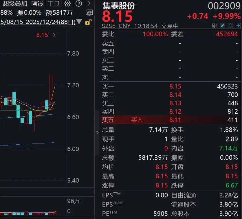 消息面上,全球AI巨头加速液冷技术应用,谷歌宣布将2026年TPU芯片出货量目标大幅上调50%至600万颗。英伟达B100、H200芯片已升级液冷散热方案,行业景气度持续提升。机构分析指出,液冷价值量伴随芯片升级提升。随着芯片升级迭代,功率密度激增,相应液冷价值量也会随之快速增长。 智能驾驶概念走强,浙江世宝7天5板,万集科技、豪恩汽电、千方科技、路畅科技、德赛西威跟涨。 浙江世宝近日透露,公司的线控转向及后轮转向技术主要应用于高级别自动驾驶汽车及豪华汽车,该技术较低速物流车更先进、难度更高。目前,线控转向开发正在有序推进,预计在2026年下半年具备量产条件。 数据中心电源概念盘初走强,新雷能“20cm”涨停,麦格米特涨停,中恒电气、科泰电源、通合科技、科华数据等跟涨。 锂电池板块持续活跃 锂电池概念延续强势,天际股份6天3板,多氟多、天赐材料、华盛锂电、大中矿业跟涨。 消息面上,12月23日碳酸锂期货主力合约大涨5.67%,实现连续三日上涨,突破12万元大关,创下年内新高。 商业航天概念走强,隆基机械、合众思壮涨停,创元科技3连板,超捷股份、再升科技、新雷能、星环科技等跟涨。 消息面上,据证监会网上办事服务平台披露,近日,蓝箭航天IPO辅导工作正式完成,辅导机构为中金公司。 福建板块震荡拉升,安记食品、合兴包装、安通控股3连板,欣贺股份、东百集团涨停,嘉亨家化、三木集团、昇兴股份跟涨。 消息面上,据福建日报12月23日发文,福建平潭全力冲刺新一轮封关运作,将持续推进一、二线出入岛通道提升改造项目(二期)等工程建设,加大力度推进各项软硬件配套设施提质升级,全面夯实新一轮封关运作的基础支撑。 |