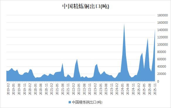 海关总署在线查询数据显示,中国11月精炼铜出口量为142991吨,同比增加逾11倍,环比大增逾1倍。精炼铜出口窗口继续打开,国内需求受高铜价抑制较为有限,冶炼厂出口动力仍强,精炼铜出口量大增。