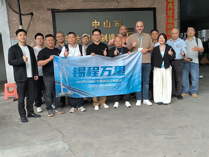 SMM12月24日讯: 随着国内锡加工产业升级提速及下游电子、化工领域需求扩容,以广东为核心的华南地区已崛起为中国乃至全球重要的有色金属加工与贸易集散地,形成覆盖锡锭、锡材消费及下游应用的完整产业集群。 华南锡产业的集聚效应与市场活力备受行业关注,上海有色网(SMM)基于对锡产业链的深刻洞察,于2025年12月9日-12日精心策划并启动 【2025 SMM锡程万里-华南锡游记考察团】。本次活动携手国内锡原料与加工企业,锡交割仓库等,共同深入华南锡产业腹地:实地探访华南锡原料供应商与精深加工企业,洞察技术革新与产能动态;亲身调研关键锡交割仓库,了解库存实况、管理规范与物流解决方案;与华南企业、资深专家等进行开放式沙龙研讨,共探技术发展,共享发展机遇。 12月12日,2025 SMM锡程万里-华南锡游记考察团的成员们来到2025 SMM锡程万里-华南锡游记考察团——中山市多达金属制品有限公司进行考察。 考察交流 2025 SMM锡程万里-华南锡游记考察团——中山市多达金属制品有限公司,考察团成员受到中山市多达金属制品有限公司领导们的热情接待,并在中山市多达金属制品有限公司领导们的陪同下了解了公司的电子焊料,特殊焊料的生产和研发等情况。