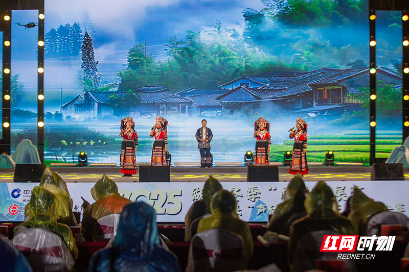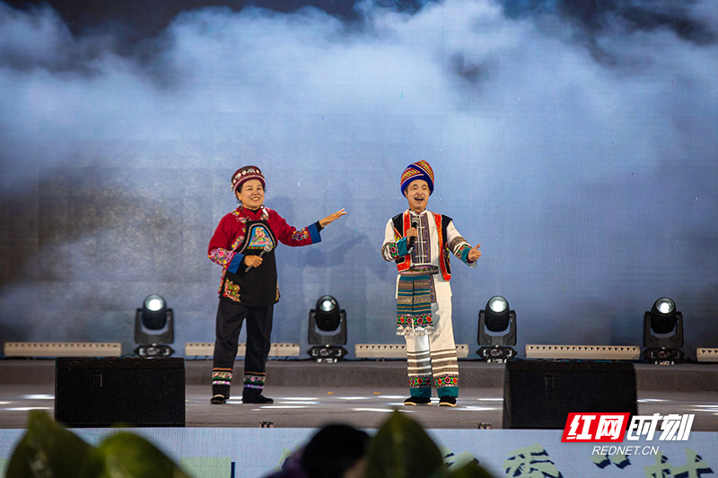 桑植民歌《砍条大路歌就来》。 跨界共鸣环节成为一大亮点:陕北、桑植、江华三地民歌手轮番登台,带来极具地域特色的民歌展演,与嘉禾本土音乐文化交相辉映,搭建起地域文化交流桥梁;湖南省歌舞剧院副院长、一级演员陈香水倾情演绎嘉禾民歌,配上灵动伴舞,让现场观众沉浸在浓郁的本土文化氛围中。 “王者加冕”环节激动人心,经专业评委与50名大众评委综合评审,民美组、通俗组、伴嫁歌组年度歌王、亚军、季军依次诞生,活动还评选出最佳人气奖、优秀组织奖等。领导嘉宾为获奖选手及单位颁发奖金、奖牌和礼品,3名年度歌王获文旅歌曲录制机会,并被授予“嘉禾伴嫁歌传承(唱)人”称号。随后,“三王同框”互动环节精彩上演,刀王、厨王与歌王同台亮相,彰显嘉禾多元文化魅力。
