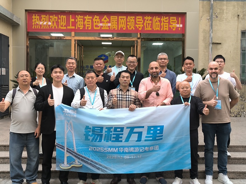 SMM12月24日讯: 随着国内锡加工产业升级提速及下游电子、化工领域需求扩容,以广东为核心的华南地区已崛起为中国乃至全球重要的有色金属加工与贸易集散地,形成覆盖锡锭、锡材消费及下游应用的完整产业集群。 华南锡产业的集聚效应与市场活力备受行业关注,上海有色网(SMM)基于对锡产业链的深刻洞察,于2025年12月9日-12日精心策划并启动 【2025 SMM锡程万里-华南锡游记考察团】。本次活动携手国内锡原料与加工企业,锡交割仓库等,共同深入华南锡产业腹地:实地探访华南锡原料供应商与精深加工企业,洞察技术革新与产能动态;亲身调研关键锡交割仓库,了解库存实况、管理规范与物流解决方案;与华南企业、资深专家等进行开放式沙龙研讨,共探技术发展,共享发展机遇。 12月11日,2025 SMM锡程万里-华南锡游记考察团的成员们来到2025 SMM锡程万里-华南锡游记考察团——中山市馨之德金属有限公司进行考察。 考察交流 2025 SMM锡程万里-华南锡游记考察团——中山市馨之德金属有限公司,考察团成员受到中山市馨之德金属有限公司领导们的热情接待,并在中山市馨之德金属有限公司领导们的陪同下参观了公司的生产车间、先进的检测仪器和焊锡自动化生产设备等。