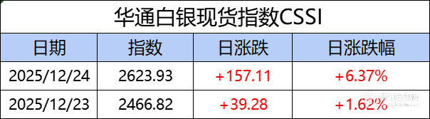 华通白银网12月24日讯: 华通白银现货指数CSSI走势日报,今日指数2623.93,日