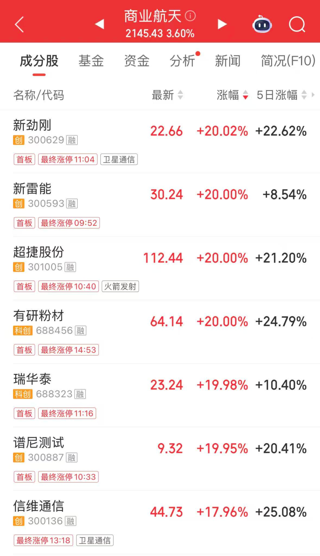 盘面上,商业航天板块全线爆发,中国卫星、航天动力、新劲刚、超捷股份、新雷能等近30股涨停。共封装光学(CPO)多股涨停,兆驰股份、环旭电子、生益科技、永鼎股份等股封板。