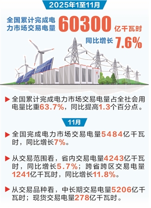 (原标题:时报数说 1至11月全国电力市场 交易电量破6万亿千瓦时) (据新华社电)