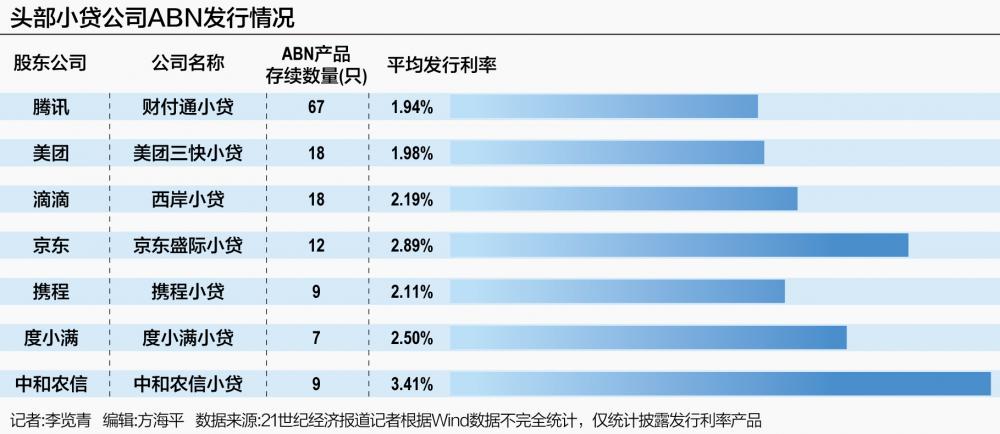 2027年底综合融资成本压降至4倍LPR以内 综合融资成本的压降是行业关注的核心问题,包括综合融资成本的界定和利率上限压降两部分。 与10月1日正式实施的“助贷新规”一致,《指引》强调小贷公司应落实明示贷款综合融资成本工作,即在贷款合同签署前,向借款人明示贷款综合融资成本。 具体来说,贷款综合融资成本包括但不限于贷款利息、担保费、保险费等各项息费,需折算为年化形式,明示具体息费项目、收取标准及收取主体,除明示息费项目外,不再收取其他任何形式的利息和费用。 在引导综合融资成本下降方面,《指引》按照分类施策的原则,指导小贷公司逐步将新发贷款综合融资成本压降至4倍LPR以内。 据记者梳理,压降工作的重点有三个:一是新发贷款综合融资成本超24%的立刻停发;二是对期限不超过1个月的超短期贷款(主要是应急转贷)综合融资成本适当给予弹性,但不得高于24%;三是重点引导、以大带小,由地方金融管理机构筛选出规模较大、经营稳健的重点小额贷款公司名单并制定压降计划,带动辖内全部小贷公司综合融资成本明显降低。 原则上,2026年底前,小贷公司新发综合融资成本超过4倍LPR的贷款发生额占比应明显下降;2027年底前,将小贷公司全部新发贷款综合融资成本压降至4倍LPR以内。 值得关注的是,在《指引》的问答口径附录中,进一步透露出强监管信号。 首先是在给予超短期贷款政策弹性的同时,《指引》明确禁止监管套利,严禁小贷公司通过先发放超短期贷款再反复续贷等方式规避综合融资成本管理要求。要求地方金融管理机构重点关注超短期贷款较2024年末余额不合理增长且占比不合理上升的小额贷款公司。 其次是对于规模较大、经营稳健的重点小贷公司管理上,《指引》给出了压降计划样表,并明确要求在地方金融管理机构的年度评估报告中,需专门汇报辖内重点小贷公司的综合融资成本、超4倍LPR贷款占比以及压降计划完成情况,若全部重点小贷公司每笔新发贷款均已达标,可进一步研判所有小贷公司利率压降的可行性。 有从业人士向记者表示,在各地金融管理部门的实际执行过程中,不排除对部分头部机构提出“提前达标”要求,也就是说,对于头部小贷公司而言,4倍LPR的利率上限可能来得要比2027年12月31日更早。 4倍LPR上限要求影响几何? 对于小额贷款公司来说,综合融资成本压降至4倍LPR以内影响几何? 按最新LPR报价数据来看,4倍LPR大约对应12%年化利率上限。一般来说,头部小贷机构发行ABS、ABN的资产相对优质,融资渠道更为丰富,融资成本也相对较低,可以通过其融资计划中透露的入池资产利率水平一窥重点小贷公司的降息压力。 公开信息显示,腾讯财付通小贷贷款加权平均年化利率在15%左右,美团三快小贷贷款最高年化利率在21%左右,此外,助贷平台最高年化利率上限在助贷新规后按24%执行。 某小贷公司从业人士向记者坦言,在《指引》下发前已收到相关监管调研,对利率压降到20%、12%分别进行压力测试,与消费信贷产品相比,部分小微贷款利率较低,20%的综合融资成本上限还存在一定经营空间,但当下落实12%利率上限可能存在较大挑战。 在现存的小贷公司中,助贷机构通过自持小贷牌照发放自营贷款或联合贷款,也是一大重要方向,特别是对于掌握流量优势的大厂而言,小额贷款牌照在其金融布局中的地位更加重要。 一家头部助贷机构人士告诉记者,出于发行ABS、ABN等融资需求,平台给自营小贷的资产优于助贷资产,但相对利率也难以探至12%以下区间。从信用分层来看,12%以下信贷资产一般对应城商行、信用卡覆盖的客群范围,资金成本不占优势的小贷公司往往难以与其形成竞争。 小贷公司的融资成本分化较为显著。记者根据Wind数据梳理了目前存续的小额贷款公司ABN发行情况,披露票面利率数据的ABN产品共140只,其中腾讯旗下深圳市财付通网络金融小额贷款有限公司发行产品共67只,占比47.86%,平均发行利率最低。为1.94%。而聚焦三农普惠金融服务的重庆市中和农信小额贷款有限公司发行产品共9只,平均发行利率最高,为3.41%。 需要说明的是,ABS、ABN产品的发行利率已经是小贷公司诸多融资渠道中,除股东增资、资金拆借之外,资金成本较低的渠道,即使是融资渠道最为畅通的头部小贷公司,资金成本也在3%以上,消费金融公司的资金成本在4%以上,而商业银行受息差收窄、LPR下调等多种因素影响,存款利率已下行至2%以下区间。 “与商业银行相比,消费金融机构与小贷公司服务的客群风险相对较高,缺乏资金成本优势,但面临更为严苛的利率限制,从而对规模扩张与市场竞争形成更大的挑战。”一位资深消费信贷从业人士向记者坦言。 小贷行业加速出清 多位受访对象指出,《指引》的下发将加速小贷行业的出清。 一方面是对助贷平台自营贷款业务的冲击。“《指引》对小贷牌照价值的冲击巨大,预计将大幅缩减小贷新增业务规模,对助贷行业来说,小贷牌照的吸引力将进一步下降。”一位消费金融专家告诉记者,未来助贷平台的资金方将主要由银行与消费金融机构承担,与此同时,银行、消金等持牌金融机构作为普惠金融“主力军”的作用将更加凸显。 近年来,在强监管要求下,互联网大厂、头部助贷平台都在加速对消费金融牌照、银行牌照的布局,将流量优势纳入持牌经营的框架内,成为金融服务的“正规军”。从网