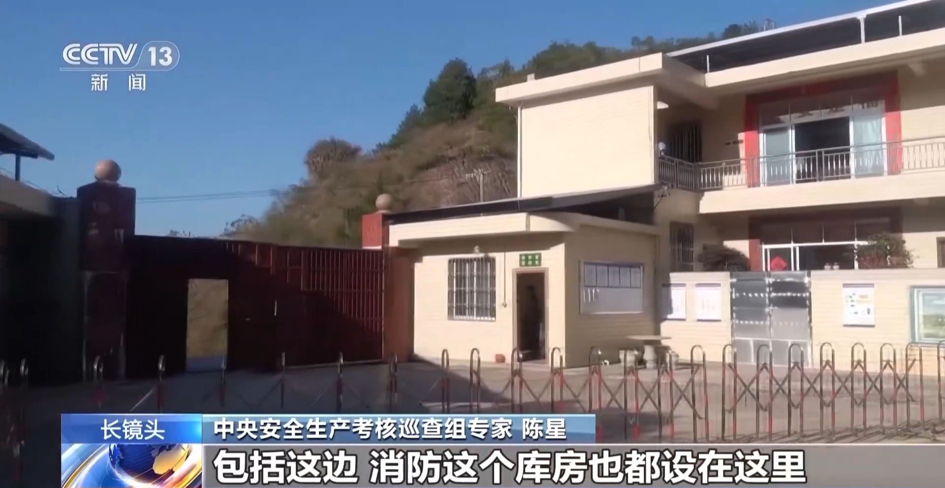 中央安全生产考核巡查组专家 陈星:所以刚才咱们看到这边有值班室、监控室,都设在生产区了,包括消防、库房也都设在这里。家从这个门就可以进去,跟生产区没有分开。