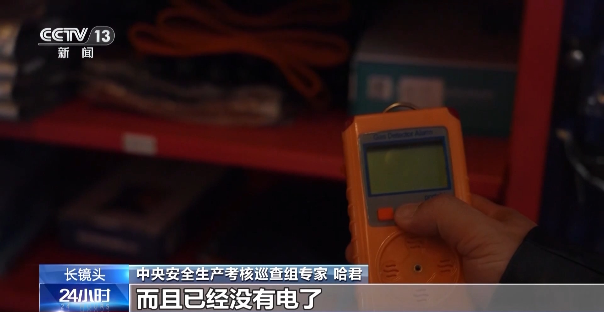 中央安全生产考核巡查组专家 哈君:而且已经没有电了,现场失效,开机瞬间就没有电了,这个是一年检定一次。这个气瓶也没检验对吧?那为啥不检。
