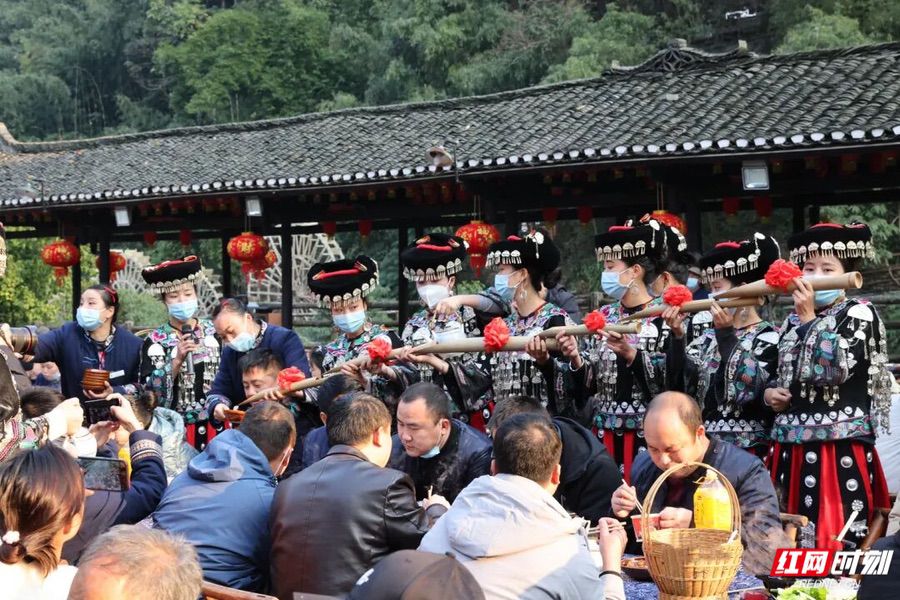 在德夯苗寨,游客可深度体验苗族非遗项目。 红网时刻新闻12月25日讯(记者 何超 通讯员 彭丽)为迎接2026年元旦,湘西矮寨奇观旅游区将于1月1日至1月3日推出以“极限+非遗”为主题的系列狂欢活动。活动将深度结合当地独特的苗族文化与世界级的峡谷地貌,为游客提供一场集民俗体验、高空挑战与新年祈福于一体的特色假期。 届时,在德夯苗寨,游客可深度体验苗族非遗项目。2026年元旦假期,每日10:30和15:00,将在德夯苗寨农耕文化园举行“非遗公演”,包含拦门酒、鼓王表演、芦笙踩堂等民俗节目。同时,景区在竹艺坊、蜡染坊、苗绣坊设置了全天开放的手工艺体验项目,由非遗代表性传承人现场指导,游客可亲手制作元旦限定竹编挂件、蜡染或苗绣作品并免费带走。此外,即日起至2026年2月23日,景区还提供需提前定制的“过苗年”特色活动,包含杀年猪祭祀、打糍粑、长龙宴及篝火晚会等完整民俗流程。