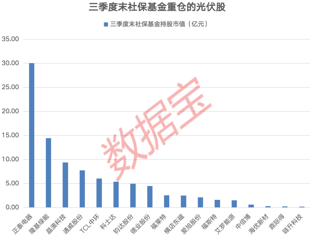 阳光电源机构关注度最高,公司半年报显示,公司持续深耕全球市场,加码布局欧洲、美洲、亚太、中东非、中国市场,已在海外建设了超20家分支机构和60多家代表处,产品远销全球100多个国家和地区。 随着光伏产业链价格持续回升,概念股获得多路资金关注。统计显示,三季度末17股获社保基金重仓,其中7股为新进重仓,包括隆基绿能、爱旭股份、福斯特等,TCL中环、晶澳科技获社保基金持股数量环比增长。 隆基绿能三季报显示,全国社保基金118组合新进成为公司前十大流通股东,三季度末持股市值达到14.23亿元。公司在投资者问答平台上表示,公司将通过提升产品毛利和降低费用来推动公司经营情况改善。随着公司BC产能的持续释放,公司BC产品的销售占比将逐步提升,推动公司毛利率水平进一步改善,预计四季度实现主营业务毛利与费用基本持平。