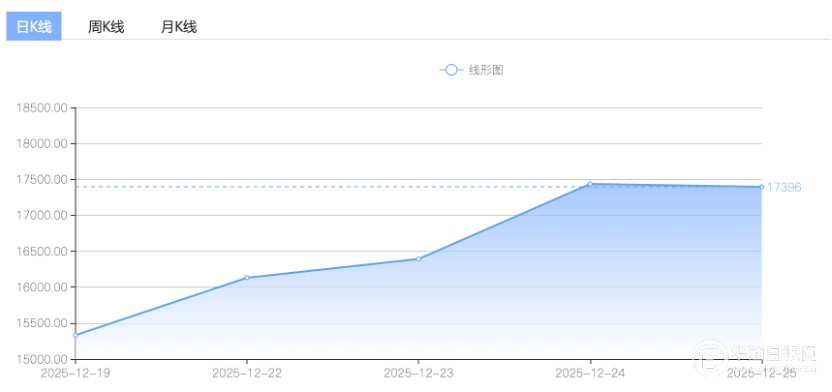 【华通白银网12月26日】周五(12月26日),现货白银在经历了圣诞节假期后继续震荡上涨,一度暴涨4.5%,首次突破75美元/盎司历史关口。白银连续5个交易日上涨,近期的升势受到投机资金流入的推动,同时10月历史性“逼空”之后,主要交易中心仍存在供应错配与扰动,也为价格提供支撑。衡量美元强弱的彭博美元即期指数(Bloomberg Dollar Spot Index)本周下跌0.8%,创下自6月以来的最大单周跌幅。美元指数的疲软,以及市场对新任美联储主席鸽派立场的预期,进一步削弱了美元计价资产的吸引力,为以美元计价的白银提供了支撑。 今日,上海华通铂银国标一号银定盘价报18477元/千克,较上一交易日上涨1081元/千克。