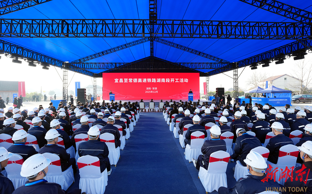 开工现场。 宜常高铁是国家“八纵八横”高铁网呼和浩特至南宁通道的重要组成部分,起于湖北宜昌北站,在湖南境内新建澧县、临澧站,接入既有站常德站。路线全长234.5公里(其中湖南境内98.4公里),设计时速350公里,工期4年,预计2029年底建成通车。该项目是串联湘鄂两省的“黄金纽带”,将有力赋能湖南湘西北地区高质量发展,建成后将与黔张常、张吉怀铁路衔接,使湖南高铁网络从“节点型”向“网状型”升级,成为连接华中、西南、华南的关键节点,对我省积极构建对外开放新通道、加快完善现代化综合交通运输体系具有重要意义。