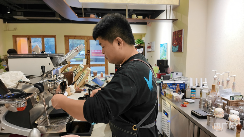 位于长沙县泉塘街道的社区咖啡店(央广网记者黄珂岚 摄) 这家看似日常的社区咖啡小馆,实则藏着“90后”返乡青年丁阳的民生大账:日均客单超60杯、会员超400人,年营收超30万……这一串数字的背后,是政策托底的创业底气,是社区治理的民生暖意,更是县域经济的发展活力。 和大多数创业者一样,丁阳的创业初衷也是源于自己的喜爱。2012年,他在深圳从事室内设计期间,萌生了开咖啡店的念头,却因现实压力搁置创业想法。辗转重庆建筑行业多年,他始终深耕咖啡领域,钻研烘焙技艺、参加专业赛事,积累下扎实功底。