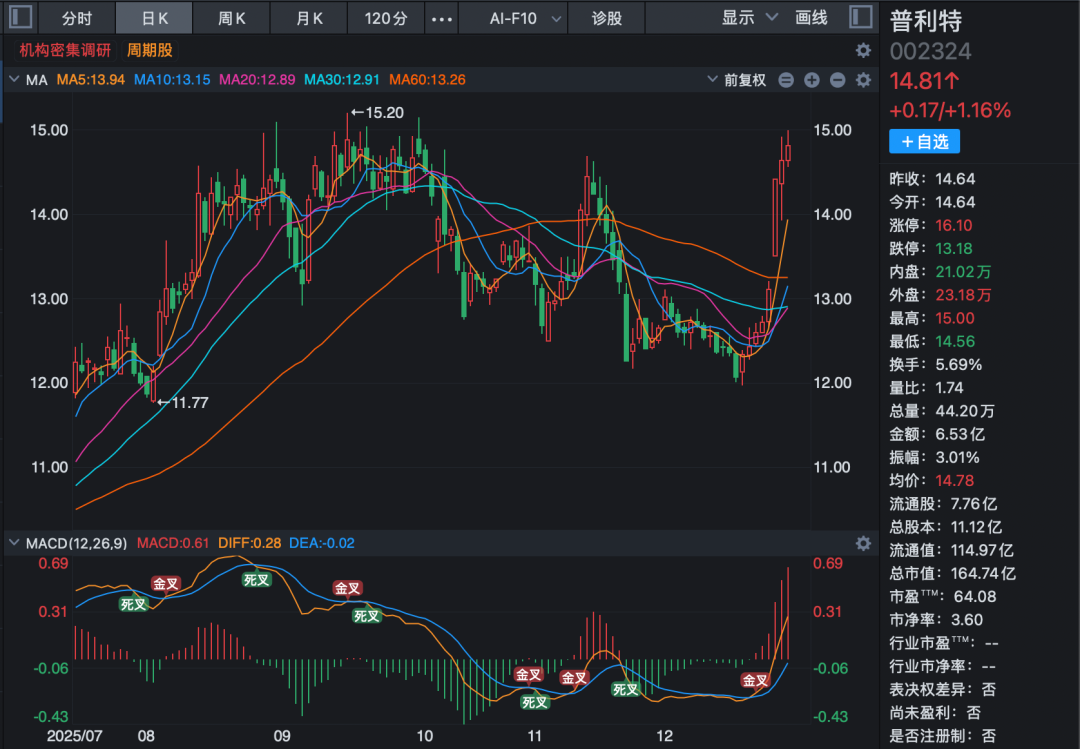 领益智造:逾34倍溢价收购引关注 领益智造以超过34倍的溢价,取得了一家热管理公司控制权,引发机构关注。12月22日晚,领益智造发布公告称拟以8.75亿元收购东莞市立敏达电子科技有限公司(下称:立敏达)35%股权,合计控制52.78%表决权,并取得对立敏达的控制权。 本次交易最让机构关注的在于其高评估溢价。根据公告,截至2025年9月30日,立敏达经审计的所有者权益仅为7127.02万元。然而,以同日为基准日、采用收益法进行的评估,其股东全部权益价值高达25.1亿元,增值率达3421.81%,意味着溢价率逾34倍。 立敏达主要产品包括服务器液冷快拆连接器、液冷歧管等热管理关键硬件,以及母线排和服务器机架等相关组件,多家媒体报道称,立敏达为英伟达AVL/RVL认证的液冷供应商,为后者提供液冷板、液冷歧管以及NVQD系列快接头散热组件。 机构重点关注立敏达直接或间接客户是否包含英伟达、Meta、谷歌等海外公司,以及收购立敏达目的等。领益智造表示,本次收购有助于进一步丰富服务器板块产品矩阵,提升公司AI硬件服务器板块的业务规模和盈利能力。立敏达在企业级服务器热管理领域具备深厚的核心技术积累和丰富的行业经验,核心客户覆盖海外算力行业头部客户及其供应链相关合作伙伴、相关服务器代工厂、电源解决方案公司,并且已建立深厚且长久的客户合作关系。但因立敏达与客户签署保密协议,领益智造并未透露具体合作情况。 关于在AI算力服务器领域进展,领益智造表示公司为企业级服务器中的GPU及CPU提供先进的热管理产品及解决方案,已经布局的产品包括GPU散热模组、液冷散热模组、高性能GPU、散热解决方案、Big MAC-多轴腔体散热模组、高功率服务器、散热模组、远程服务器、散热模组等;同时致力于开发和生产先进的企业级服务器电源解决方案,服务于数据中心及服务器。 普利特:机器人领域获突破 普利特本周接受76家机构调研。