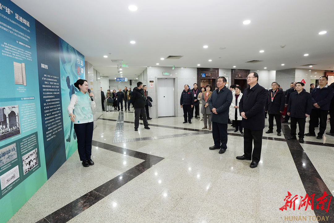 何报翔、毛伟明在赛前参观湘超主题文化展。 决赛前,何报翔、毛伟明一行还参观了湘超主题文化展。2025湘超联赛致力于促进青少年足球事业发展,自9月7日开赛至本场决赛前,共进行了98场比赛,吸引超230万人到现场观赛,赛事期间各主场城市接待游客总计6324.9万人次,带动消费总额达128.19亿元。何报翔、毛伟明点赞说,17周时间内,14支参赛队用汗水、拼搏和坚韧,为全省人民呈现了一届精彩、欢乐、难忘的湘超联赛,成为湖南目前最“出圈”的赛事品牌。要进一步放大赛事溢出效应,推动体育与文旅、商业、会展等产业深度融合,把火爆的湘超流量转化为强劲的发展增量。 图片/湖南日报全媒体记者 刘尚文 郭立亮 摄 |
