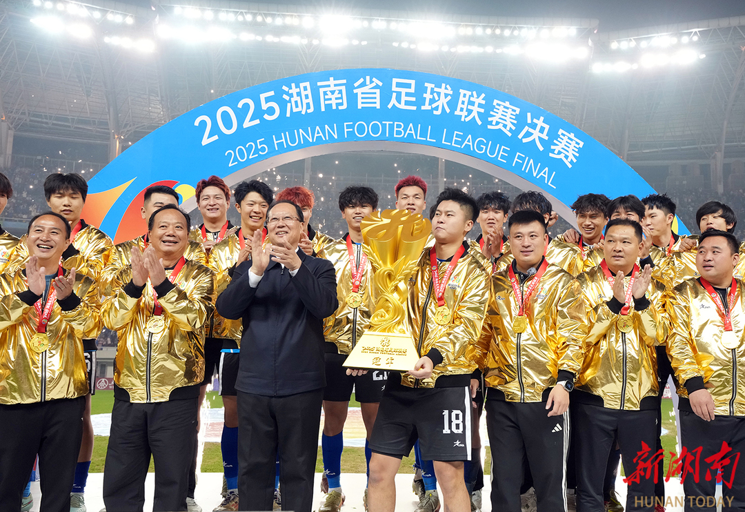 绽放湖湘风采放飞青春梦想 永州队夺取2025湘超联赛冠军 何报翔到场观赛毛伟明颁奖 27日晚,2025湖南省足球联赛(简称“湘超联赛”)在长沙贺龙体育场上演巅峰对决。经过90分钟的鏖战,最终永州队以1∶0战胜常德队,夺得2025湘超联赛冠军。全国政协副主席、民革中央常务副主席何报翔到场观赛,省委副书记、省长毛伟明为冠军球队颁奖。 省领导及老同志吴桂英、张迎春、王道席、刘红兵、杨浩东、周农、蒋涤非、李建中、谢勇,中国工程院院士田红旗,省政府秘书长瞿海观看比赛。