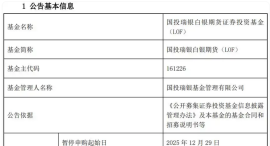 12月26日,国投瑞银白银期货证券投资基金(LOF)发布公告表示,为保护基金份额持有人