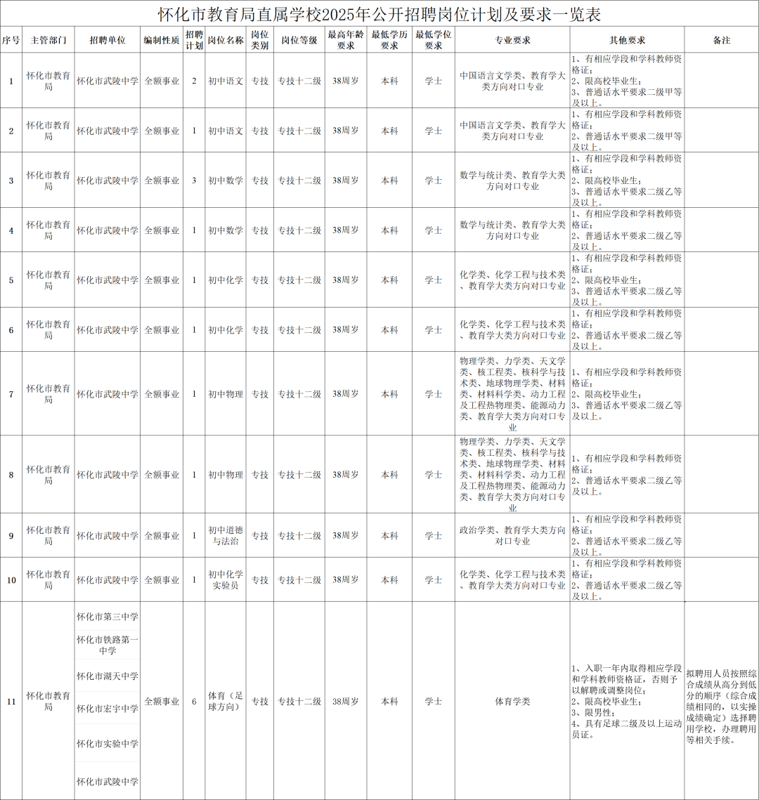 报名时间 2025 年12月22日9:00-12月31日16:00。 报名方式 报名网站为气象人才招聘网(http://zp.cmatec.cn) 怀化市教育局直属学校2025年公开招聘教职工公告 招聘岗位