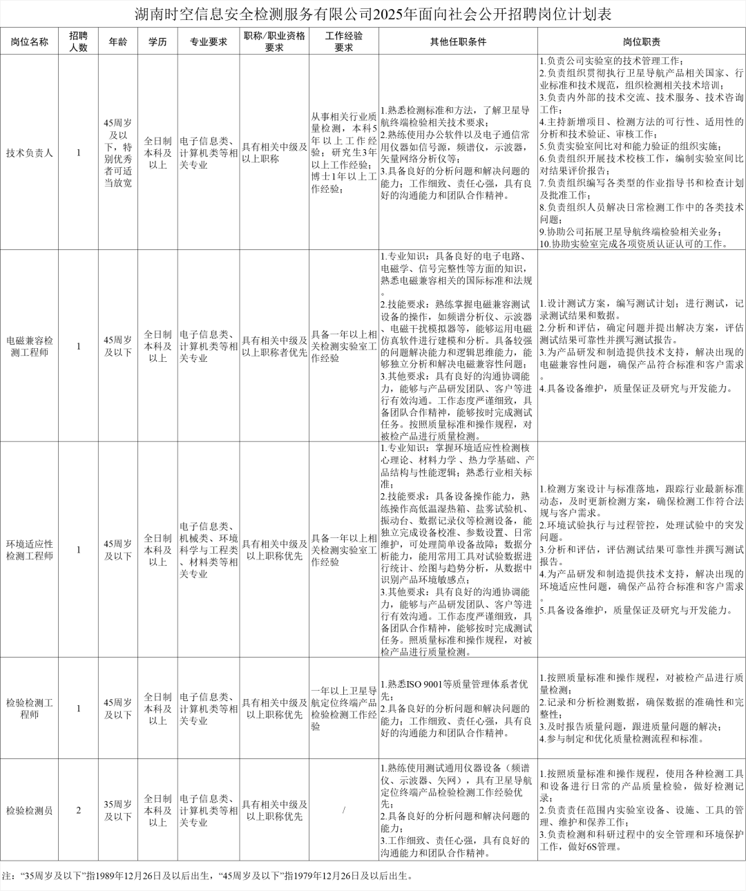 报名时间 2025年12月23日—12月31日。 报名方式 见《招聘岗位》内面试地点你了 湖南时空信息安全检测服务有限公司2025年面向社会公开招聘公告 招聘岗位