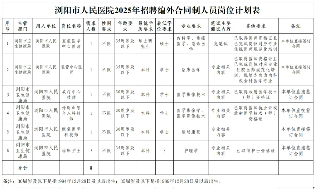 报名时间 2025年12月29日(星期一)9:00— 2025年12 月31日(星期三)17:00。 报名方式 报名地址:长沙市岳麓区岳华路与富华路西北角长沙城建信息中心317会议室。 浏阳市人民医院2025年公开招聘编外合同制人员公告 招聘岗位