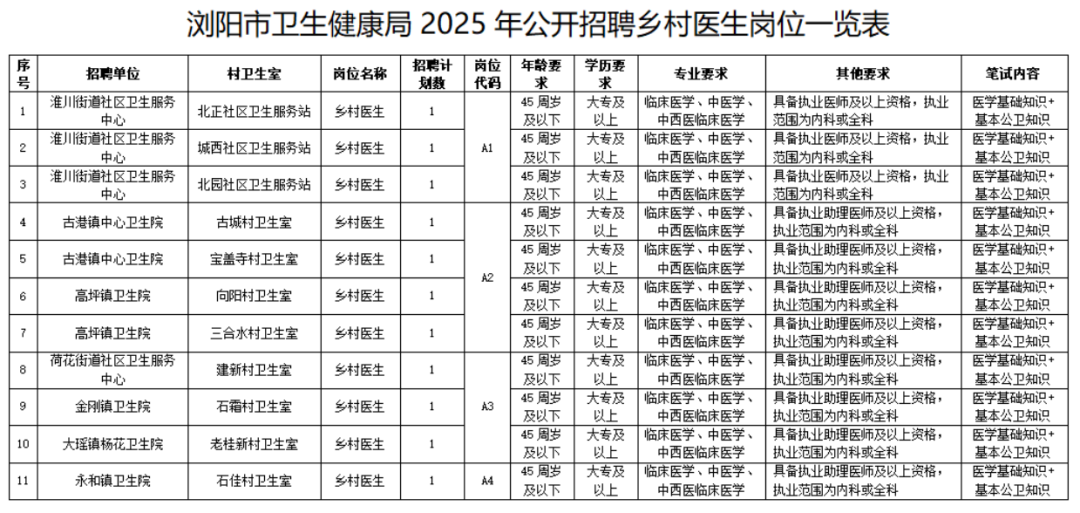 报名时间 2025年12月29日-2025年12月30日 报名方式 报名地点:隆回县人民医院门诊七楼小会议室 浏阳市卫生健康局2025年公开招聘乡村医生公告 招聘岗位