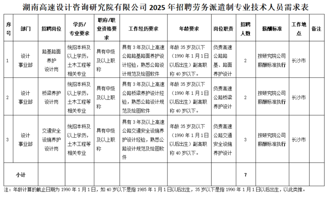 报名方式 2025年12月25日12:00至2026年1月9日17:00。 报名方式 报名网址:https://rcjt.zhaopin.com 湖南高速设计咨询研究院有限公司2025年公开招聘劳务派遣员工公告 招聘岗位