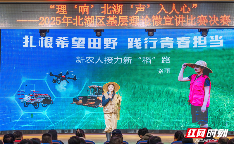 2025年北湖区基层理论微宣讲决赛。 守定“入脑入心”这条生命线,北湖“理”响清晰地照见“我是谁”后,下好了第一手棋——宣讲队伍“从哪里来”,立起醒目路标。 打破身份壁垒,跳出以往从体制内遴选宣讲员的路径依赖,北湖区开放式选拔机制“海纳百川”,以基层党员为主体,宣讲队伍“有容乃大”。