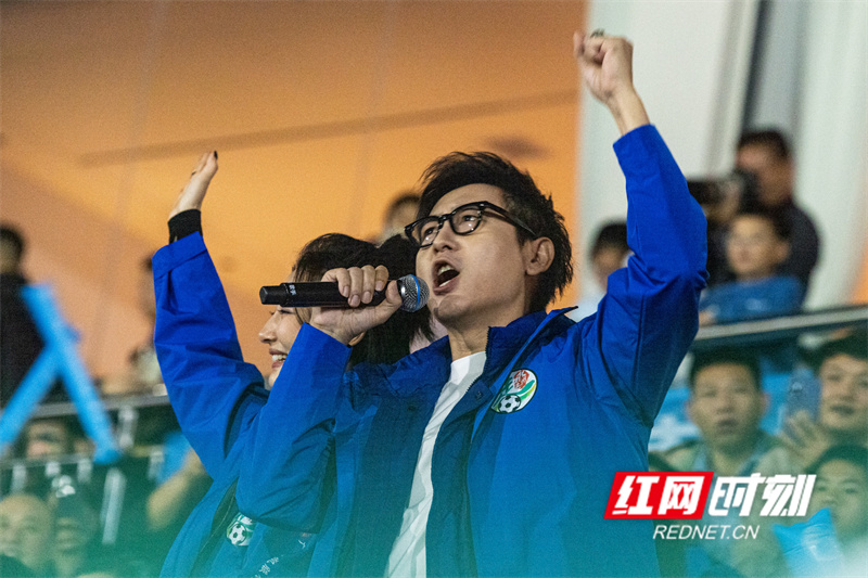 鼓点在湘超的浪花里绵延起伏 湘江把碧波卷进边线旗 当楚天飘来芬芳的云朵 浪漫绿茵 诗意荡漾 ——黄佳伟