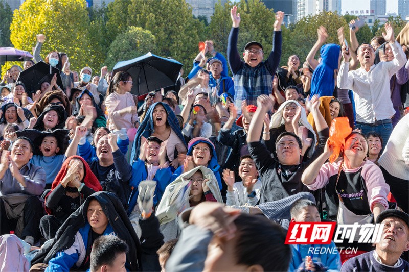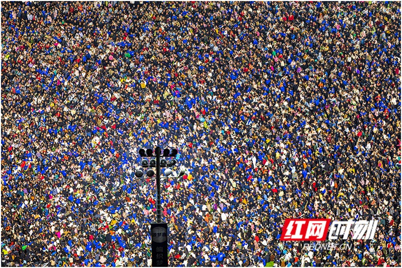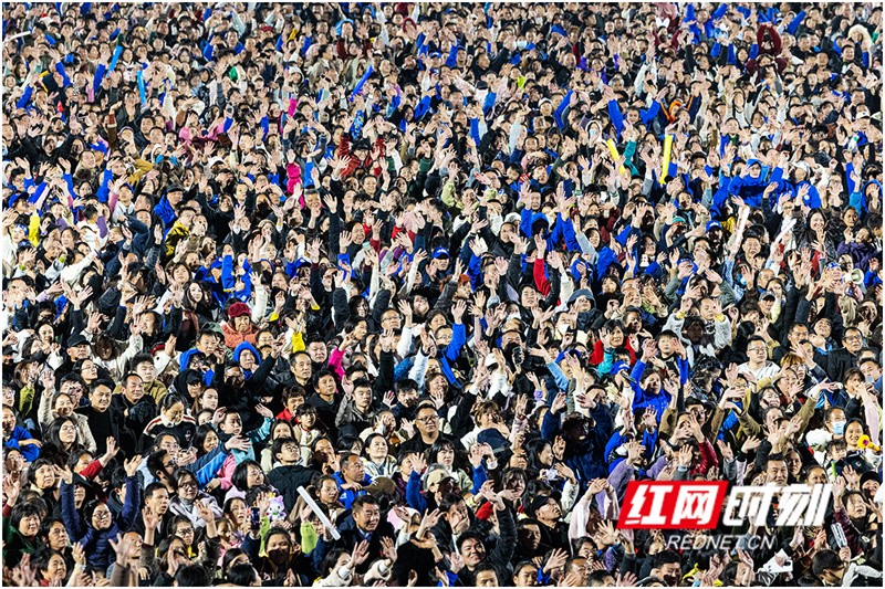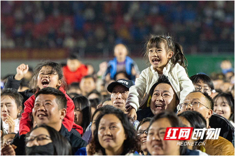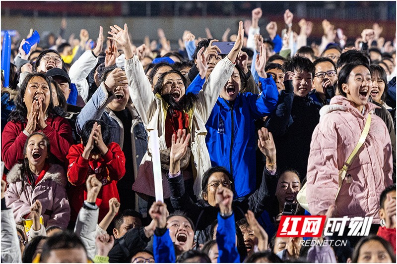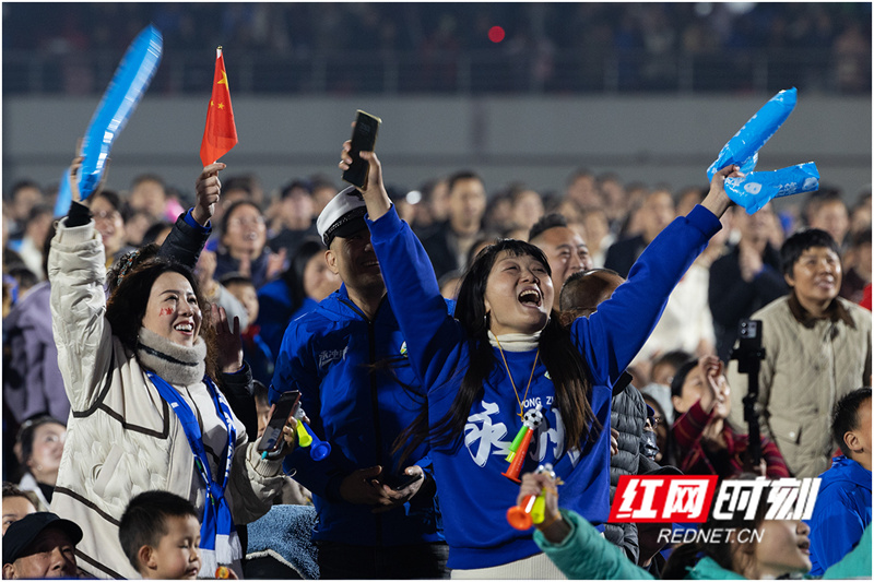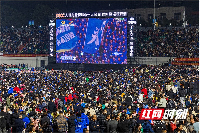 人潮如浪 孩子骑在如山般的肩头呐喊 把惊喜举上夜空 “湘超”永州第二现场 热辣滚烫 ——唐淑娟