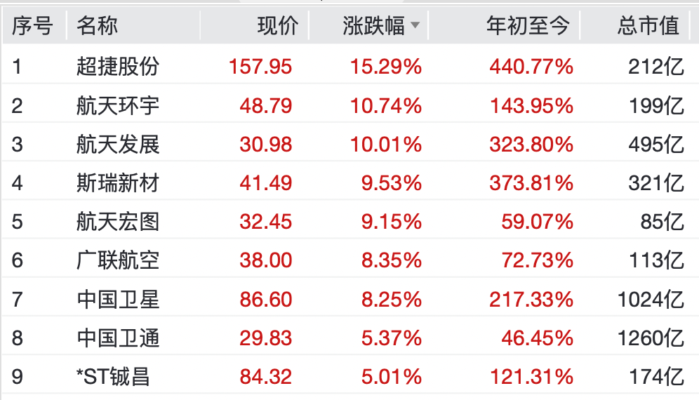 消息面上,国际半导体产业协会(SEMI)近日发布报告显示,2025年全球半导体制造设备总销售额预计达1330亿美元,同比增长13.7%,创历史新高。预计未来两年半导体制造设备销售额将继续增长,2026年和2027年分别达到1450亿美元和1560亿美元。 商业航天概念股再度活跃 商业航天板块再度活跃。个股方面,航天发展、雷科防务录得10cm涨停,超捷股份涨超15%,航天环宇涨超10%,斯瑞新材、航天宏图、广联航空、中国卫星均涨超8%。