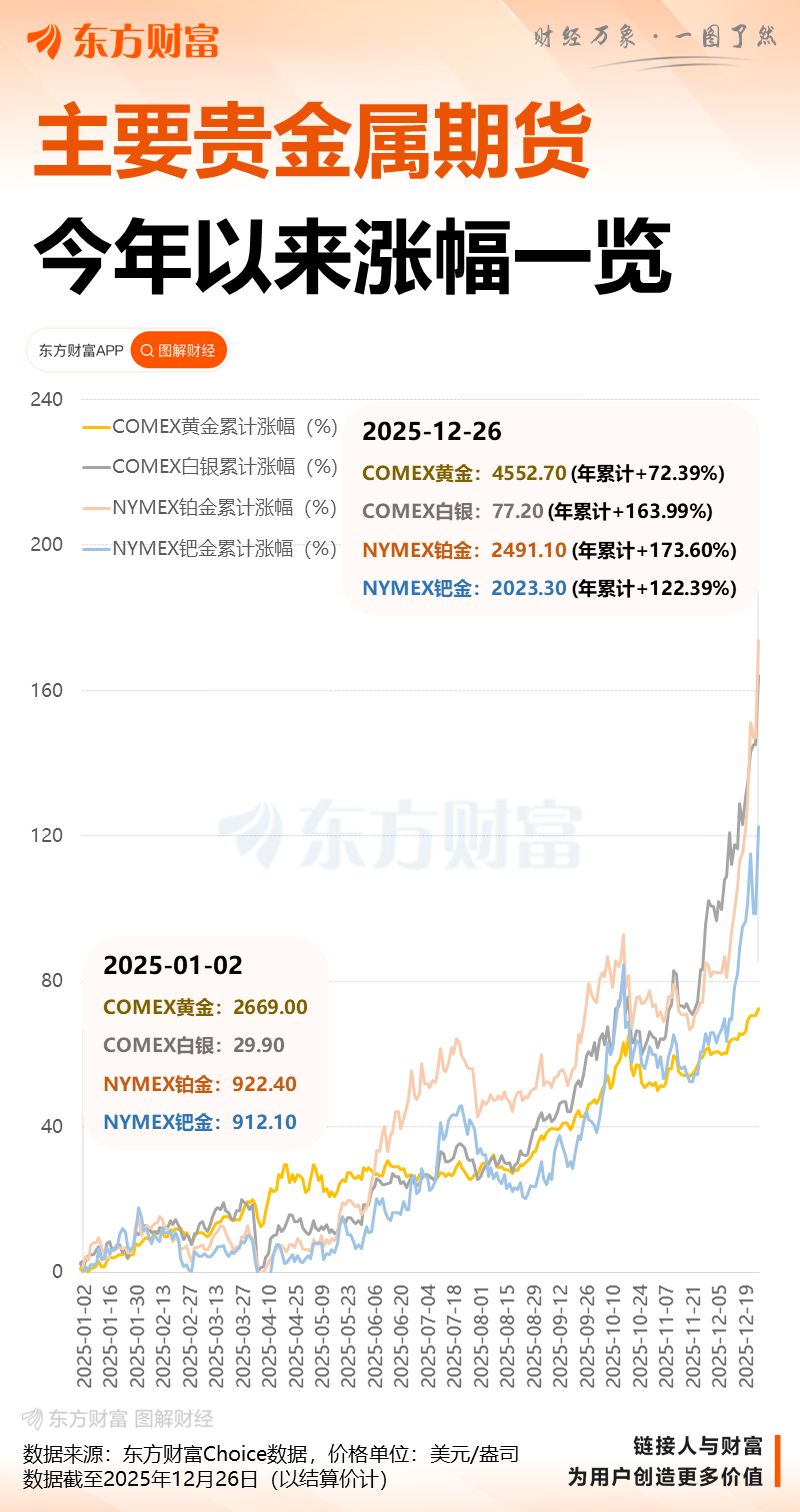 随着白银价格不断攀升,目前该贵金属市值已超越苹果,晋升为全球第三大资产,仅低于黄金和英伟达。 周一,白银市场巨震,上演了 “暴涨后急跌” 的过山车行情:现货白银开盘暴力拉升,一度上涨逾5%,站上83美元/盎司;随后上演高台跳水,一度跌破75美元,日内振幅达9美元;截至发稿,现货白银价格交投在80美元附近。 ![]() 分析认为,白银周一从高位回落的原因之一是,交易员从供需结构性失衡推动的创纪录涨势中获利了结。 今年以来,白银价格出现了史诗级暴涨,截至目前已经累计上涨近180%。银价快速上涨受到供应紧张、被美国列为关键矿产、工业需求强劲、地缘政治紧张局势提振避险需求、美联储降息预期推动贵金属上涨,以及流动性低放大波动性等多重因素的驱动。 眼下,白银市场已进入“高波动模式”,一方面供应短缺支撑价格,另一方面投机情绪放大风险。 根据市值数据平台CompaniesMarketCap的数据,目前白银市值为4.485万亿美元;黄金以31.719万亿美元的市值位居榜首,芯片巨头英伟达以4.638万亿美元的市值位列第二。前十名榜单如下: ![]() 值得注意的是,眼下距离白银晋升全球第四大资产仅过去短短大约10天的时间。当时,白银的市值超越了一举超越了近来风头正盛的AI“当红炸子鸡”谷歌。 市场专家认为,白银的全球市值排名可能会进一步提升。有行业人士表示,如果目前的上涨势头持续下去,白银很可能会超越英伟达,成为全球第二大资产。 就在白银价格上演过山车行情之际,分析师对银价的看法出现了两极分化。以华尔街著名经济学家彼得·希夫为代表的乐观派认为,银价明年有望冲破100美元。而悲观派则警告称,贵金属价格已站在“悬崖边缘”,回调风险正在累积。 瑞银近日警告称,贵金属交易的短期风险已经明显增加,新高过后短期投资者获利了结的风险加大,且年末流动性稀薄可能加剧了价格波动,使得短期内的走势更难以解读。 凯投宏观分析师日前在报告中写道:“贵金属价格已经上涨到我们认为难以用基本面解释的水平。”他们预计,白银价格到明年年底可能回落至约42美元。