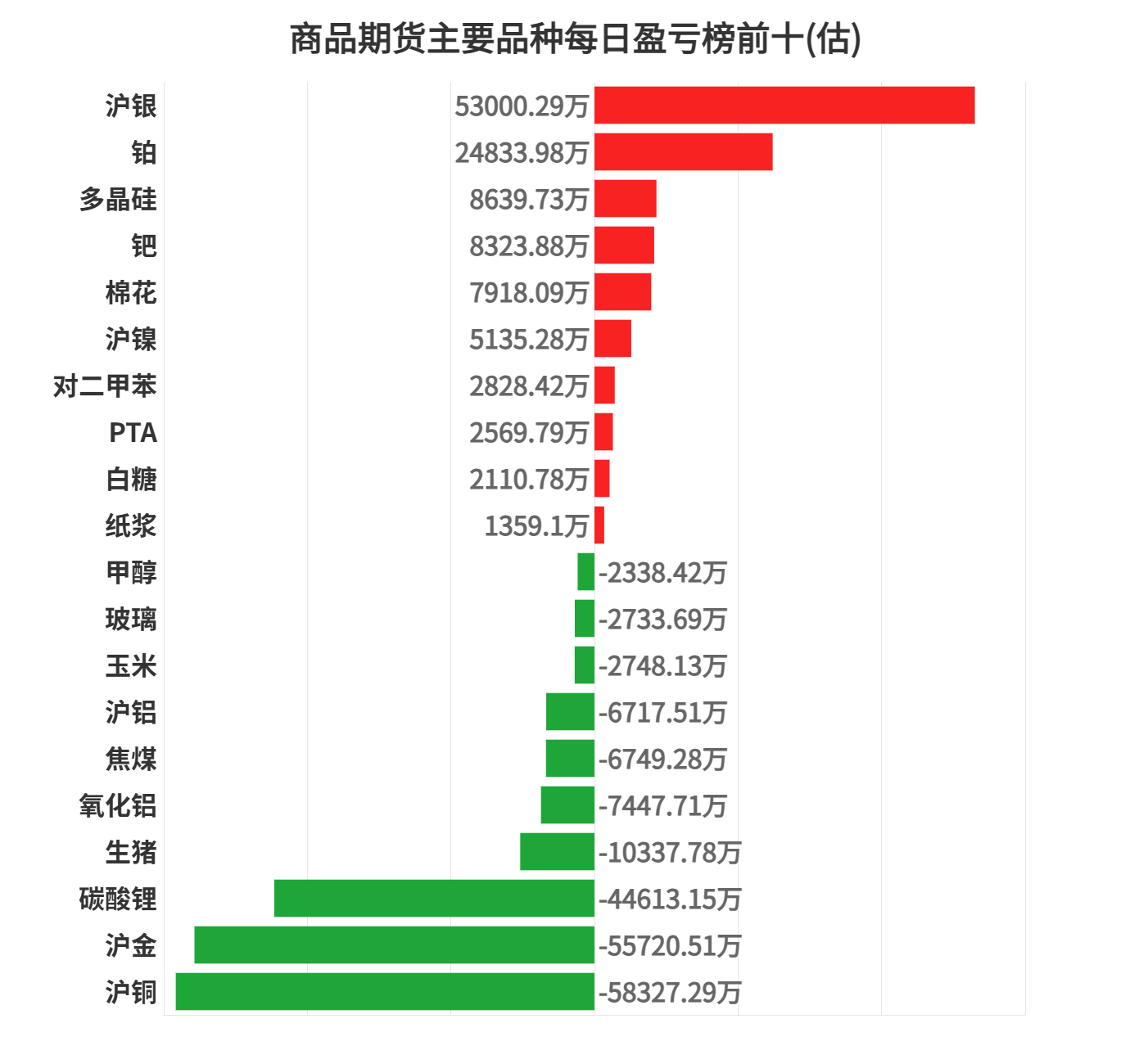 每日期货龙虎榜,带你深度了解市场。 市场一览:周一商品期货综合指数下跌0.64%,日内资金净流出229.33亿元。 市场成交量为3930.27万手,成交额为4.43万亿元。 持仓量为3728.92万手,较前一交易日减少56.59万手。 市场成交量前十和持仓量前十如下图所示: ![]() ![]() ![]() 品种盈亏榜:今日商品期货上榜机构席位中沪银盈利第一,为53000.29万元。 沪铜亏损第一,为58327.29万元。 ![]() 注:盈亏数据为对应龙虎榜持仓的估算数据。 您可通过点击东方财富期货APP资讯页面“龙虎榜”及东方财富期货PC端左侧“龙虎榜”查看各类席位持仓及盈亏榜单信息。点此查看>> ![]() ![]() 本信息来源于东方财富Choice数据,相关数据仅供参考,若数据有误,以交易所发布数据为准,不构成投资建议。 (文章来源:东方财富研究中心) |