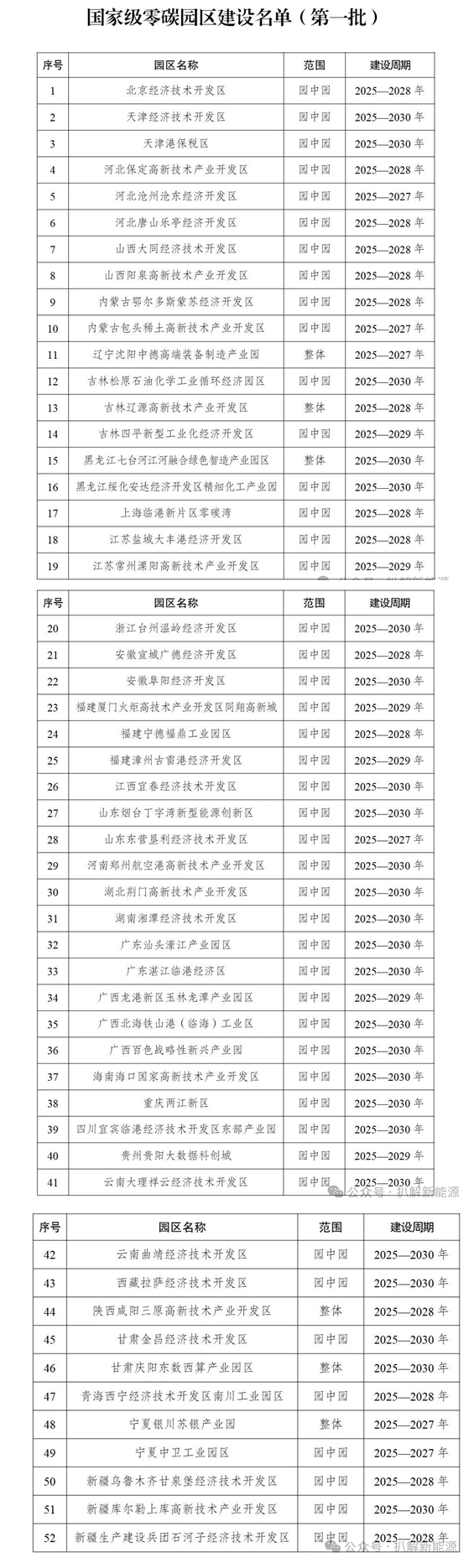 河北沧东零碳产业园 “我们不只是做监测,更是做管理、做减排、做优化、做赋能。”孙捷强调。“远景方舟如同园区的‘零碳大脑’,能够基于实时数据动态调整运行策略,在保障用能安全的前提下,持续降低碳强度与用能成本。” 02 52个名单透露了哪些趋势 这份名单也透露了零碳园区的意义和未来发展方向。 有几个关键词值得注意,包括绿电直连、新能源就近接入增量配电网、绿色电力直接供应模式等,这些关键表述,意味着在零碳园区这个政策试验田中,国家将实质性松动传统电网、电价与电力交易的边界,这也是正在推进的电力体制改革适应新型能源系统的落地场景。 尤其是新能源就近接入增量配电网和绿色电力直接供应,是绿电直连的再进一步。 根据此前政策,绿电直连是新能源与用户点对点直供,难以覆盖多企业混合园区,以及公共负荷,如办公、商业、交通、数据中心等,解决不了零碳园区的全场景问题。 在绿电直连角度,远景也在内蒙古乌兰察布与旭阳集团旗下翔福科技携手打造的源网荷储一体化项目,已成为绿电直连建设的标杆实践。该项目为20万吨负极材料产能配备了58万千瓦绿电供应,绿电使用比例超过60%,不仅成功构建“绿电-负极材料-电池制造”的绿色产业链闭环,更显著降本增效并提升产品出口的绿色竞争力。 只有“园区级电力系统”作为承载,才能面对数十到上百家企业和多种负荷形态,这正是“新能源就近接入增量配电网 + 绿色电力直接供应”要解决的问题。 以后,新能源可以直接成为园区电网的一部分,而不是外部电源。这其实是一种新电力体制改革信号,而且不是试点,而是“推动落地”。 以下是第一批国家级零碳园区名单: