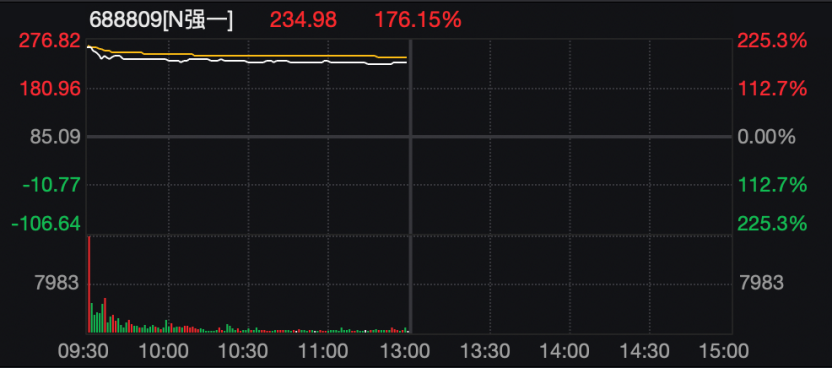 招股资料显示,双欣环保是一家专业从事聚乙烯醇(PVA)、特种纤维、醋酸乙烯(VAC)、碳化钙(电石)等PVA产业链上下游产品的研发、生产、销售的高新技术企业,拥有聚乙烯醇全产业链布局。其中,电石作为化工“基石”,主要用于生产乙炔进而合成PVC、PVA、BDO等重要化工材料,是有机化学工业上游的基础性原材料。聚乙烯醇是一种水溶性可降解高分子材料,具有粘结性、成纤性、乳化稳定性、气体阻隔性、成膜性、生物降解性等诸多性能,主要用于生产工业助剂、特种纤维、胶粘剂、安全玻璃夹层膜(PVB膜)、水溶膜、光学膜等,广泛应用于精细化工、绿色建筑、造纸、纤维、汽车、可降解包装、光电、医药等行业,是国家重点支持的新材料发展方向。 另一只新股强一股份盘中涨幅超过220%。