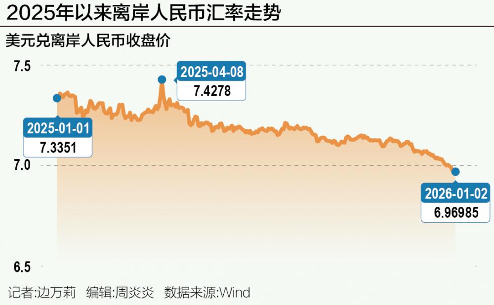 多重因素共振助推破7 2025年以来,人民币兑美元汇率呈现“先弱后强”的走势。从年初至4月初,人民币汇率震荡偏弱,人民币兑美元汇率收盘价降至7.35左右;进入4月以后,人民币兑美元汇率由贬转升,出现趋势性拐点。 分析其原因,中国民生银行首席经济学家温彬认为,2025年初,在强美元的压制下,人民币汇率一度面临较大贬值压力。4月份由于全球关税政策风险上升,离岸人民币汇率一度贬破7.40。而后随着中美经贸谈判有序推进,美元指数由强转弱,人民币兑美元开启渐进升值之路。人民币汇率在7.18附近震荡三个月后,进入9月,市场对美联储重启降息的“抢跑”愈演愈烈,美元指数在9月降息当日一度跌至96.2179,而人民币汇率也顺势升至7.12左右。 2025年11月下旬,人民币开始呈现明显的单边升值走势,人民币兑美元汇率突破7.1并在不断逼近7的整数关口,持续刷新年内新高。12月25日,离岸人民币升破7,创下2024年9月以来新高;12月30日,在岸人民币兑美元升破7.0关口,最高触及6.9960,涨幅达0.1%,创2023年5月17日以来最高水平。 至此,离岸人民币汇率、在岸人民币汇率双双突破“7”这一重要心理关口。多数专家认为,美元走弱是此轮人民币汇率升值的主要推动因素。 “2025年人民币汇率在外部关税极限施压的背景下逆势走强,尤其在经历4月初的极端情形考验后,自5月起出现补涨行情,年末加速升值至7附近。”在中银证券全球首席经济学家管涛看来,推动近期人民币升值的短期因素较为明确:一方面,美元走势呈现疲软态势,2025年11月份美元指数曾升至100以上,随后持续回落并跌破98,美元走弱为人民币升值提供了外部支撑;另一方面,中国经济基本面表现稳健,全年5%左右的经济增长目标基本能够实现,进一步增强了市场对人民币的信心。 从近几年美元指数与人民币的相关性来看,近期人民币汇率的升值幅度大致匹配美元的下跌幅度。中金统计了2023年6月以来月度的美元指数与人民币汇率的变动关系,二者变动幅度的比例约为3∶1,即美元指数贬值3%时,对应人民币汇率升值1%。截至2025年12月26日,当月美指贬值约1.4%,人民币升值约0.9%,按以往的对应关系,美元下跌可以解释人民币12月跌幅的一半左右。剩余的部分可能由其他因素解释。 除美元贬值外,季节性因素或是人民币升值的影响因素。中金公司研究部外汇研究首席分析师李刘阳认为,从往年经验来看,人民币汇率在年初年末往往有较强的升值动能。具体而言,过去几年,人民币汇率在11月、12月与次年1月通常会升值,季节性规律较为明确。 他进一步指出,从2025年12月的角度来看,一方面,基于出口商等市场主体的结汇需要,净结汇的规模通常较大,这为人民币汇率的推升提供了条件;另一方面,美元指数往往在年末走弱,这也有助于带动非美货币的普遍升值。考虑到2025年人民币升值的幅度已经超过了美元资金运用的收益(一般为3%~4%),年末的升值让贸易企业未做汇率风险对冲的美元头寸出现了净亏损,为了保证年底财务决算水平的稳定,外贸企业的结汇需求加速入市可能在一定程度上助推了人民币在年末的升值。 值得一提的是,也有其他专家认为年底结汇需求上升推动人民币升值。粤开证券首席经济学家、研究院院长罗志恒表示,年底出口企业结汇需求上升,同时人民币汇率升值进一步推高结汇意愿,企业结汇与汇率升值相互促进。 他强调,出口高增并不必然带来人民币汇率升值,还要看出口企业的结汇意愿。若人民币贬值预期较强,企业选择持有美元,而非结汇换成人民币,则即使出口创汇大幅增长,对人民币汇率的支撑作用也有限。随着人民币兑美元汇率持续升值,企业为避免汇兑损失,加快结汇,进一步推升汇率,汇率升值又再度强化企业的结汇意愿,形成正向循环。2025年12月人民币兑美元汇率加速升值,或许受到企业年底结汇和升值驱动结汇的影响。 除了上述因素外,出口韧性、人民币资产吸引力提升等构成了此轮人民币上涨的重要动力。总结来看,市场对人民币汇率年末的升值行情并不意外,不过幅度略超预期。 中信建投证券首席宏观分析师周君芝表示:“过去三年持续积累的看空人民币、看多美元预期太过充分,导致部分资金沉淀海外,而今年美国资产走弱,中国资产走强,这部分沉淀海外资金以结汇形式反转定价人民币和美元。即过去看空人民币情绪有多浓,现在人民币升值助推力量就有多强。” 2026年升值动能与回调压力并存 2025年12月,中国人民银行货币政策委员会召开的2025年第四季度例会,在研究下阶段货币政策主要思路时指出,“保持人民币汇率在合理均衡水平上的基本稳定。”这一表述的核心内涵在于增强人民币汇率的弹性与韧性,同时防范超调风险,避免单边预期和大起大落。 实际上,从2022年中央经济工作会议提出“保持人民币汇率在合理均衡水平上的基本稳定”以来,一直到2025年中央经济工作会议都延续了这一基调。温彬分析,2026年央行大概率仍将保持人民币汇率在合理均衡水平上的基本稳定,政策基调将是防范汇率超调风险,除了在人民币再度承受较大贬值压力时,政策大概率不会释放明显的拉动汇率升值的信号。 在《2024年第三季度中国货币政策执行报告》中,央行展望下一阶段货币政策时明确提到,坚持以市场供求为基础、参考一篮子货币进行调节、有管理的浮动汇率制度,发挥市场在汇率形成中的决定性作