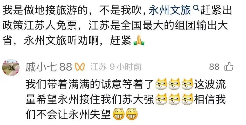 永州官方: 大家的心意我们收到啦! 欢迎来永州奔现! |