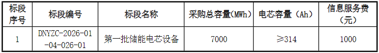 北极星储能网讯:2026年1月4日,国家电投发布2026年度第一批储能系统和第一批储能电芯设备集采招标,其中采购储能系统共5GWh,分别包含集中式储能系统4.5GWh、组串式储能系统0.5GWh;采购储能电芯共7GWh,要求电芯容量≥314Ah。 储能设备采购要求投标人四年内国内累计供货业绩不低于10GWh,至少5个单体项目容量200MWh及以上的磷酸铁锂电化学储能系统并网业绩。 储能电芯采购要求投标人三年内生产(品牌)商全球累计供货业绩不低于 10GWh(单体储能电芯容量不小于314Ah),其中需具备至少一个单个项目 400MWh及以上的订单;投标产品年产能不得低于 5GWh;且不接受联合体投标。 原文如下: 国家电力投资集团有限公司二〇二六年度第 4 批集中招标(第一批储能系统设备)招标公告 中国电能成套设备有限公司受招标人委托,对下述标段进行公开招标。 1.招标条件招标人:国家电力投资集团有限公司招标代理机构:中国电能成套设备有限公司立项情况:已立项项目资金来源:业主自筹和银行贷款项目已具备招标条件,现进行公开招标。 2.招标范围