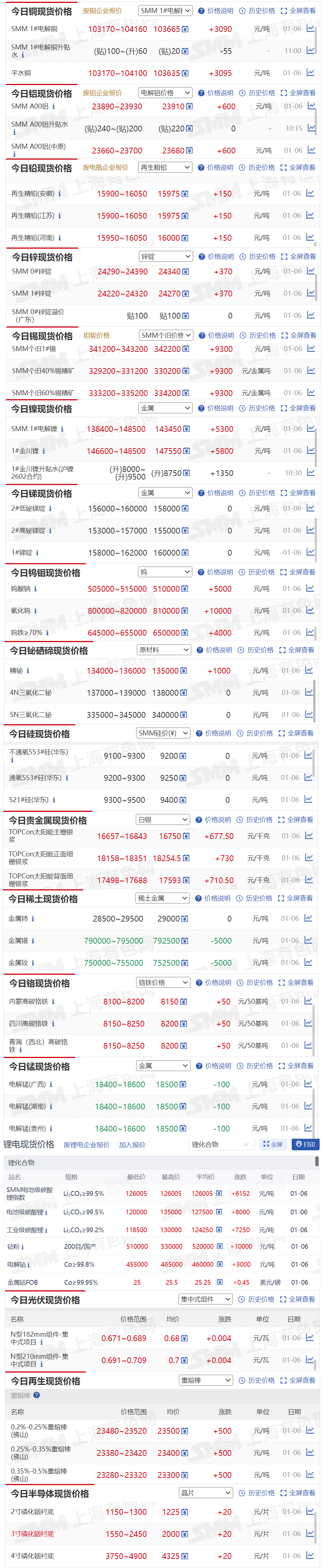 ►美元下跌 金属普涨 碳酸锂涨近9% 沪铜、沪镍、沪银铂钯等涨幅居前【SMM午评】