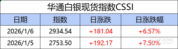 华通白银现货指数CSSI走势日报,今日指数2934.54,日涨跌+181.04,日涨跌幅+6.57%