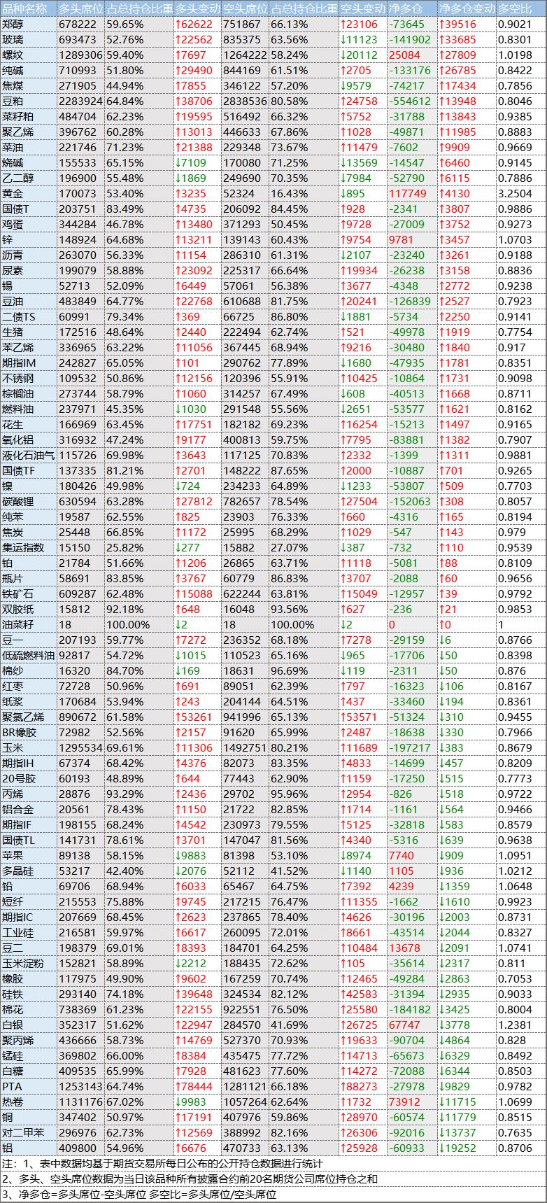 短期铝价受宏观情绪波动影响,加上供应趋紧的担忧持续,沪铝持续上涨。沪铝日内继续上涨,创逾四年新高,主力合约上涨3.29%。从盘后公布的持仓龙虎榜数据来看,沪铝空头增仓力度占据上风,净空仓扩大1.93万手,多空比刷新三个月低位;有色板块多头情绪较浓,海外再传矿端干扰,非美地区铜库存不高,铜价重心继续上移,波动明显放大。沪铜高开高走,期价最高触及105490元,刷新上市高点,收盘主力合约大涨4.88%。从持仓来看,沪铜空头增仓力度同样更胜一筹,净空仓扩大至6万手,空头逢高布局意愿增强。