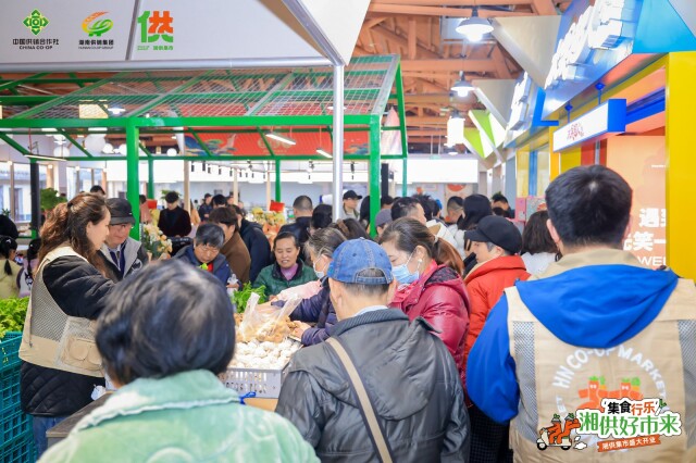 社区生鲜是湘供集市的核心业态,依托湖南省供销集团的农产品流通网络,从田间地头直供社区门店,在降低产品售价的同时,实现了生鲜品质与安全的源头把控。集市还特别开辟“供销大集”区域,以快闪馆的形式定期展销湖南各地市的特色农产品,让长沙市民在家门口就能品尝到来自三湘四水的地道风物。