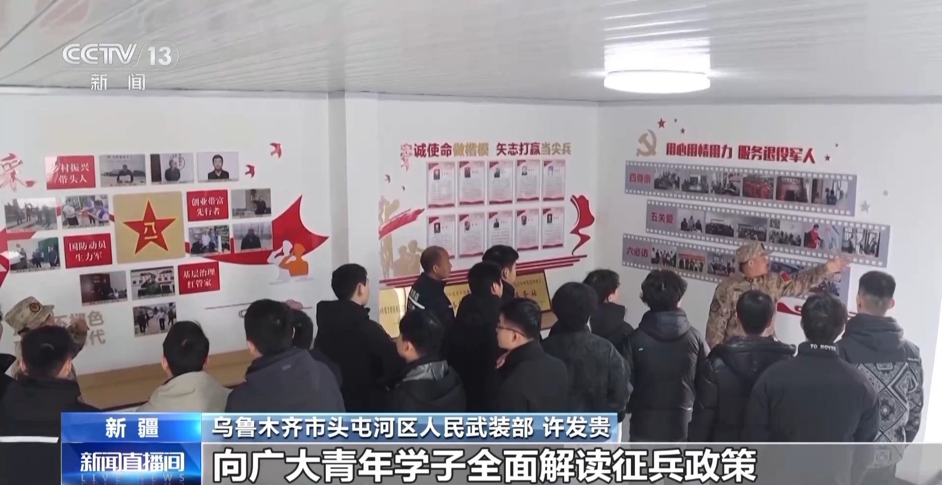 乌鲁木齐市头屯河区人民武装部 许发贵:我们通过多渠道、多形式开展征兵宣传,向广大青年学子全面解读征兵政策,以高质量宣传工作吸引更多优秀大学生携笔从戎,为军队建设发展提供坚强人才支撑。