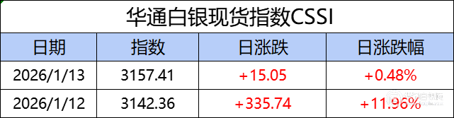 华通白银现货指数CSSI走势日报,今日指数3157.41,日涨跌+15.05,日涨跌幅+0.48%