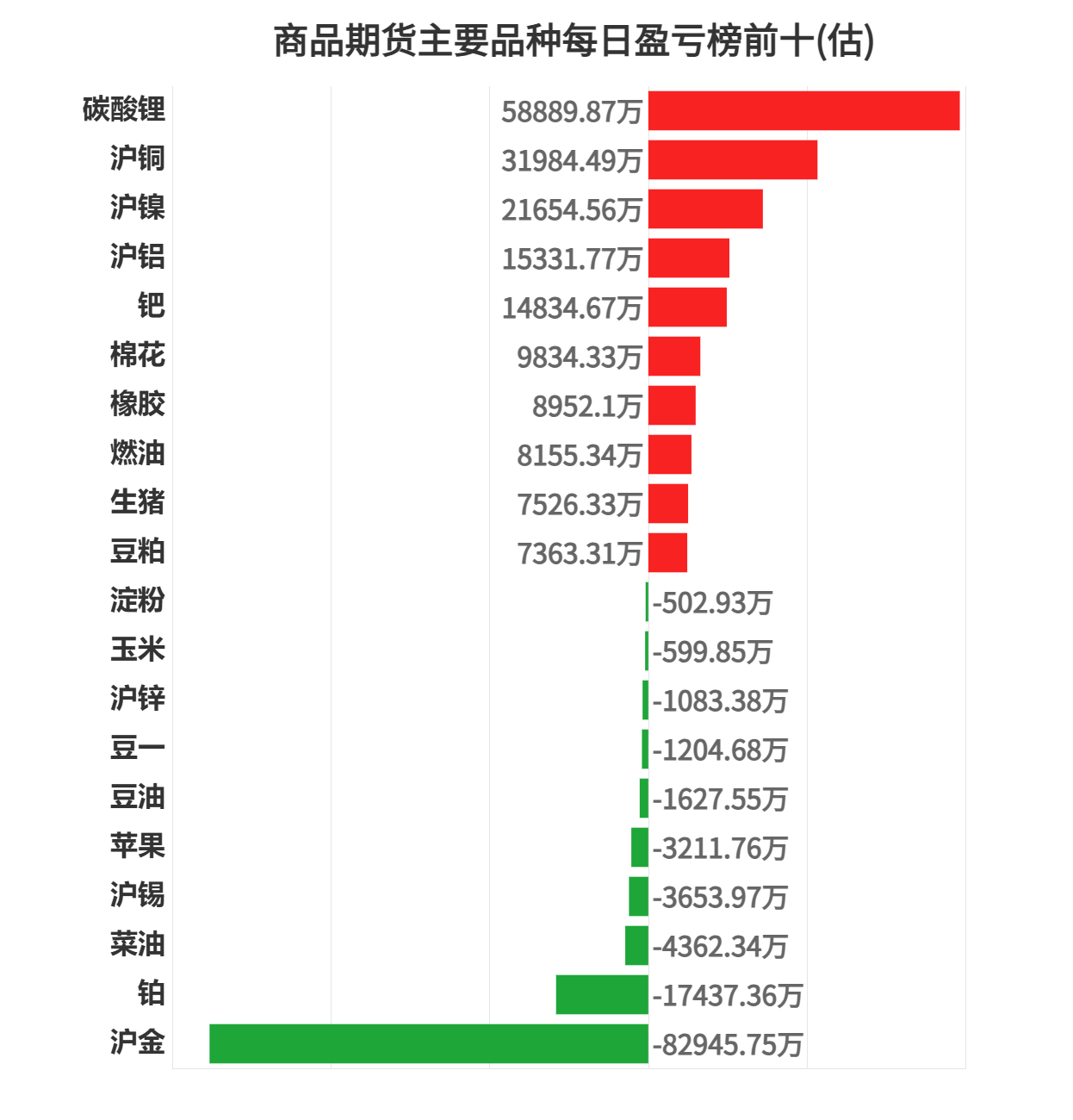 每日期货龙虎榜,带你深度了解市场。 市场一览:周五商品期货综合指数下跌1.75%,日内资金净流出185.25亿元。 市场成交量为3656.02万手,成交额为3.69万亿元。 持仓量为3985.85万手,较前一交易日减少28.94万手。 市场成交量前十和持仓量前十如下图所示: ![]() ![]() ![]() 品种盈亏榜:今日商品期货上榜机构席位中碳酸锂盈利第一,为58889.87万元。 沪金亏损第一,为82945.75万元。 ![]() 注:盈亏数据为对应龙虎榜持仓的估算数据。 您可通过点击东方财富期货APP资讯页面“龙虎榜”及东方财富期货PC端左侧“龙虎榜”查看各类席位持仓及盈亏榜单信息。点此查看>> ![]() ![]() 本信息来源于东方财富Choice数据,相关数据仅供参考,若数据有误,以交易所发布数据为准,不构成投资建议。 (文章来源:东方财富研究中心) |
