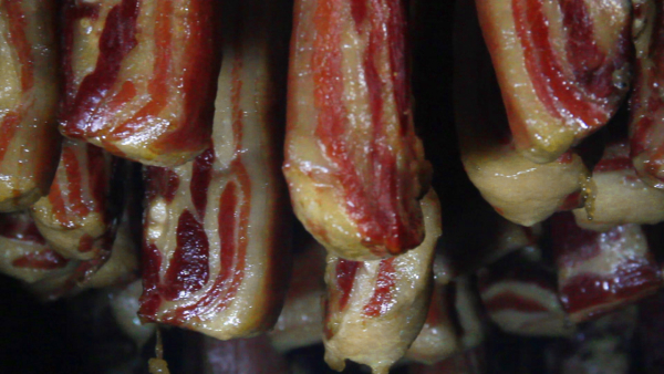 在企业的标准化熏制车间,经过腌制的新鲜猪肉需要在这里经过近一个月的慢熏。为应对生产销售旺季,企业提前扩充了生产团队,从今年1月开始,腊肉产量已达到100吨,订单排到了春节后。 安化腊肉产业的蓬勃发展,也带动了当地养殖业、种植业及相关产业链的协同发展。全县共有上万名农户参与生猪养殖和腊肉加工。为进一步提升安化腊肉的品牌影响力,当地政府不仅出台了相关扶持政策,还组织企业参加各类农产品展销会,推动安化腊肉走向更广阔的市场。 |
