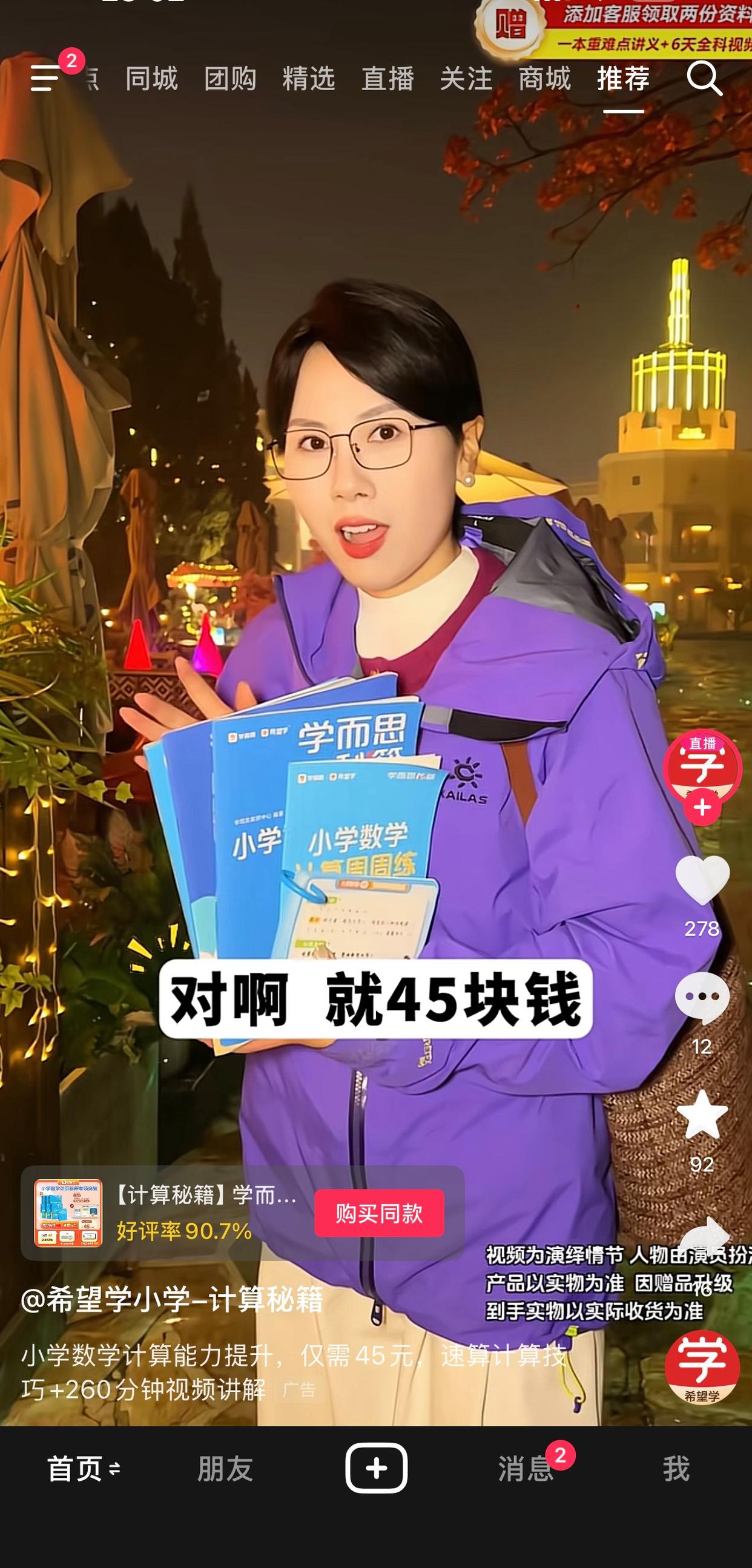 网络平台频繁推送“寒假冲刺”广告。不光短视频平台,各平台间还形成了“联动效应”:上午刚在短视频平台刷到小学英语寒假班广告,中午打开某短剧App竟又推送了同一家机构的体验课,晚上社交平台首页推荐的“家长晒娃寒假补课计划表”帖子下,评论区置顶的还是该机构的课程链接。“就像被装了‘追踪器’,不管我看什么,算法总能精准找到我,犹如拉开了一张大网,把家长‘围’进网里。”张女士苦笑道。 如果说平台广告是“软骚扰”,那高频次的电话推销堪比“硬轰炸”。“每天早上8点30分开始,陌生电话就没断过,最多一天接了8个,有推荐数理化冲刺班的,有推销作文提分课的,还有说能帮孩子定制寒假学习方案的。”家有初三学生的刘女士,如今一看到陌生手机号码就头疼,十有八九都是教培机构。最夸张的一回,是快深夜11点了,还在给她打电话,上来就是“家长您别嫌晚,这个寒假冲刺班名额快满了,我得赶紧跟您说清楚优惠政策。” 套路:名为免费试听实为推销课程 广告轰炸背后,记者调查发现,教培机构的销售手法也在翻新,不是上来直接卖课,而是先以赠试听课、赠试卷为由,吸引家长下单或关注,再一步步导向卖课。 韩女士上周在短视频平台刷到一条“学而思计算秘籍”的推广视频:“小学阶段学好速算,能让孩子受益6年!这本秘籍包含大量速算技巧,搭配同步练习册,孩子每天练15分钟,计算速度提升50%!”视频里展示的彩色印刷例题,韩女士瞧着特别好,想到儿子数学计算能力偏弱,她当即花45元下了单。下单后没多久,她就接到了一通陌生电话:“您好,我是速算秘籍的辅导老师,请您添加专属班主任老师微信。”韩女士添加微信后,对方又发来一个群链接:“咱们秘籍配套了5节免费速算直播课,进群就能领取课程表,都是资深老师授课。” 直到进群后,韩女士才发现不对劲——课程表上写的授课机构是“希望学”,而非“学而思”。咨询班主任时,对方含糊道:“希望学是前学而思教师团队创办的,课程质量和学而思一样。”而且,5节试听课只有第1节讲速算,后面几节课分别是“数学思维拓展”“语文阅读理解”“英语自然拼读”等。 “我们想听的是速算课,这是不是有点‘挂羊头卖狗肉’?”韩女士想申请退款,班主任以“书籍已发货、退款需承担运费”为由,劝阻了她。可从第一节课开始,她每天都会多次收到班主任的微信和电话,不断向她推销5000余元的“寒假+春季”语数外组合课包。
